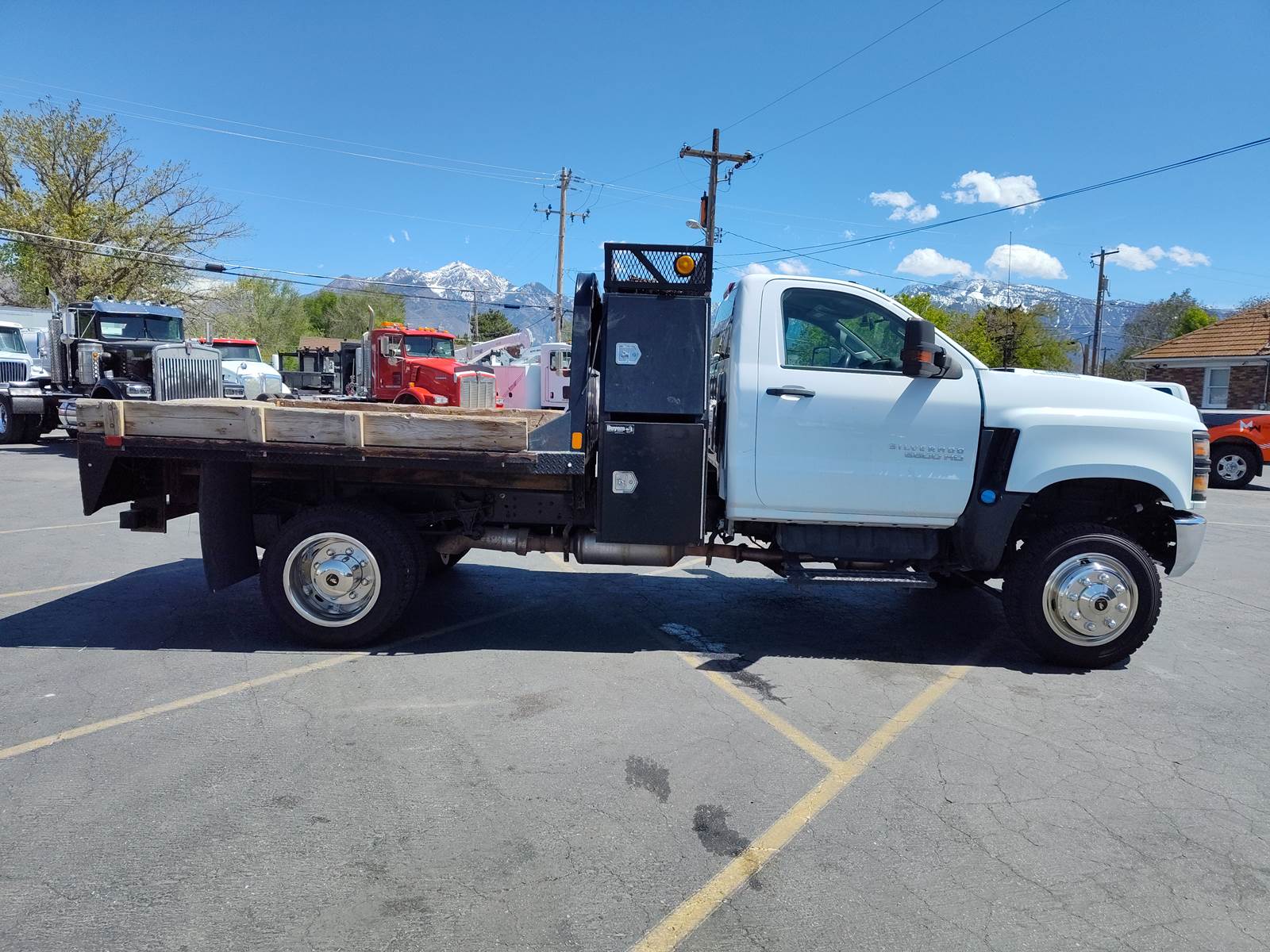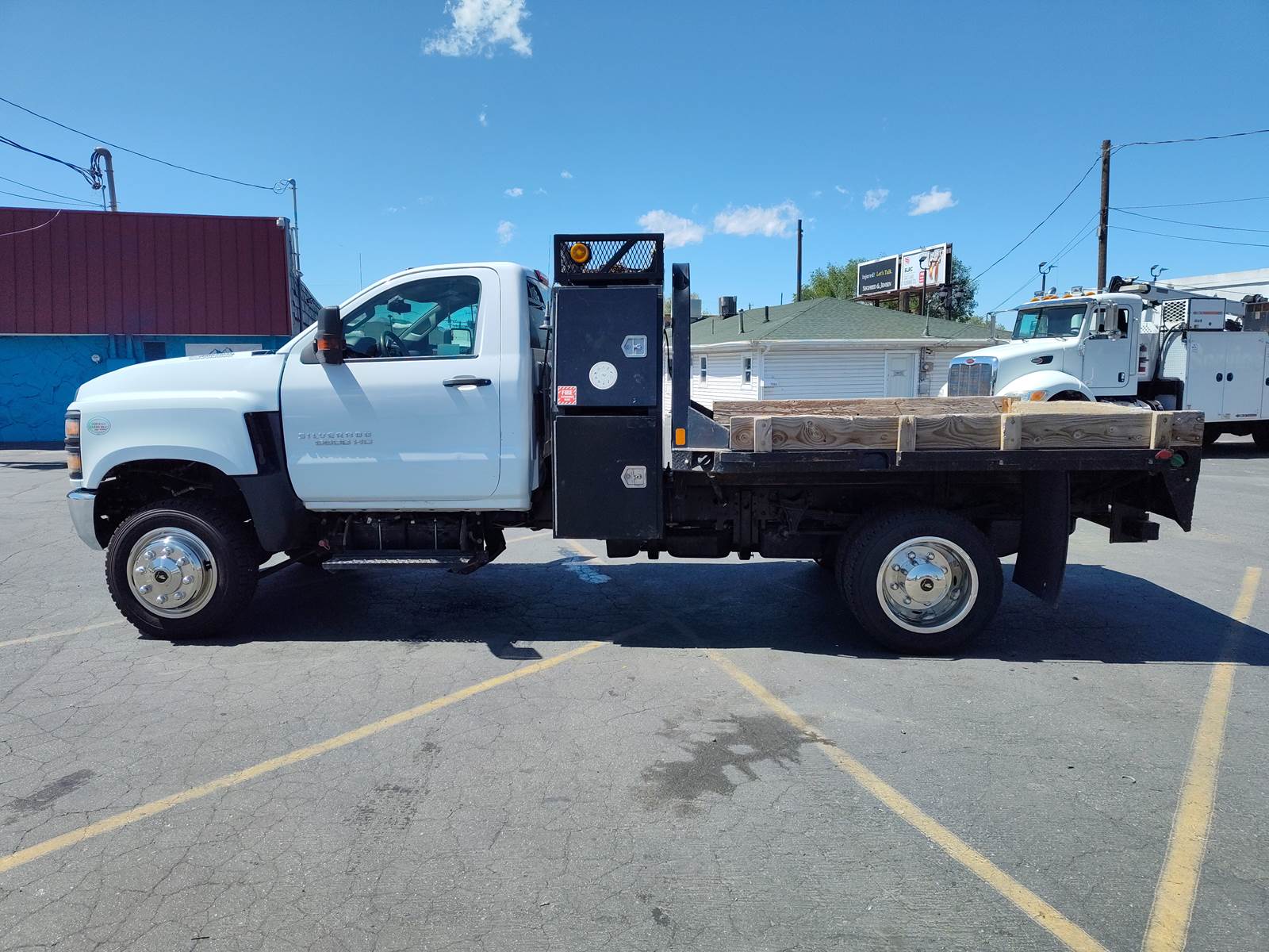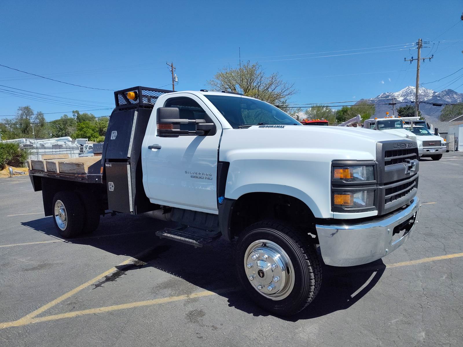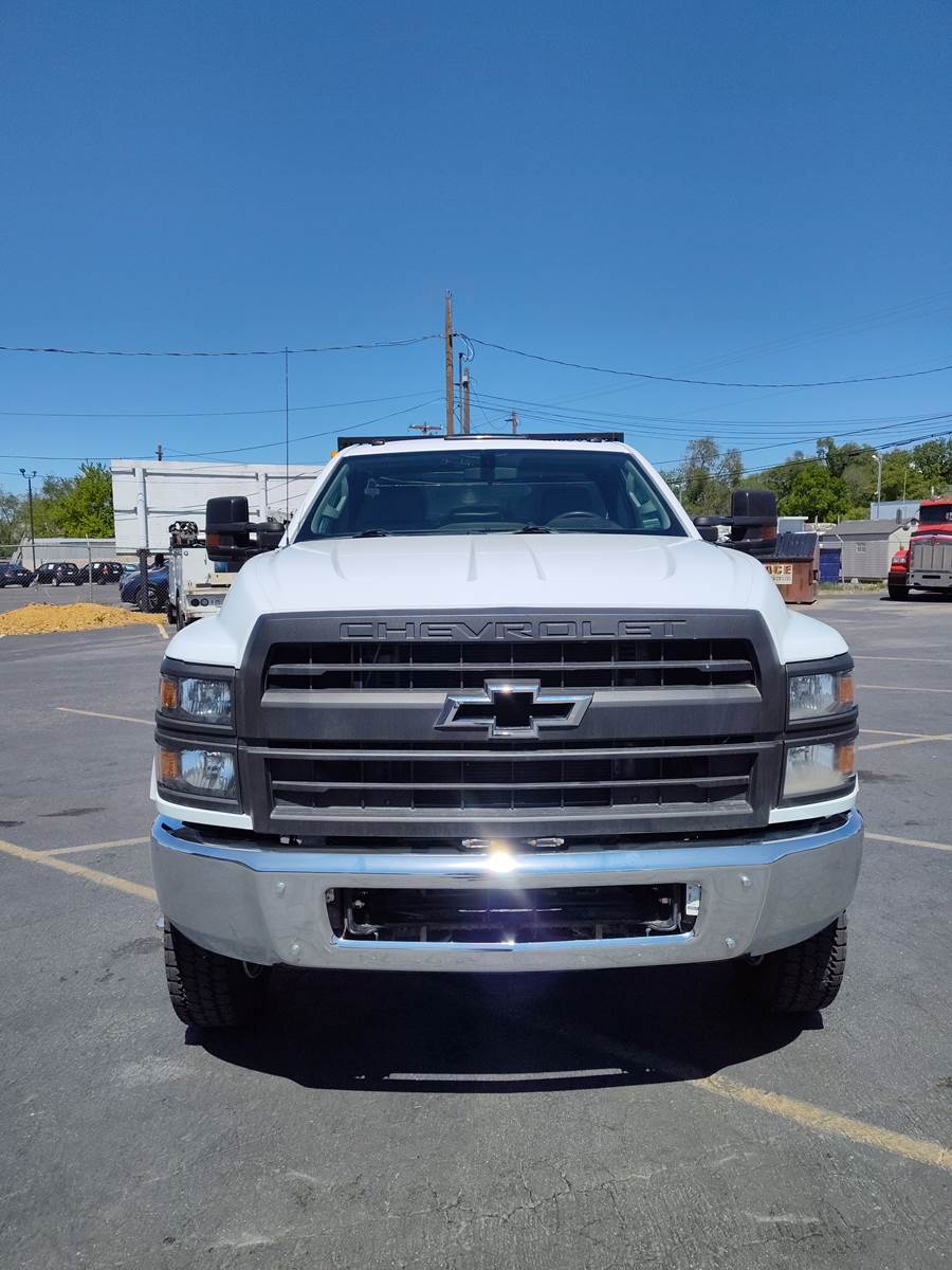 JUST IN ! Check out this 2019 Chevy Silverado 6500HD 4X4, Low miles 32K. Clean inside out. New tires all around, 225/70R19.5. Eagle Flight wheels, New windshield. 84 C.A, 160 Wheelbase, Duramax Diesel 6.6L. 350 H.P. Allison automatic 6-speed. 4.88 Ratio. Trailer brake controller. Power steering, Power windows, Power locks, Power Mirrors. Aluminum step panels, AM/FM/Bluetooth Radio, Rear View camera. Cold A/C, Hot Heat. PTO. Exhaust Brake. DPF DEF. 9’ CM Flatbed truck bed with recessed gooseneck ball hitch and tool boxes.