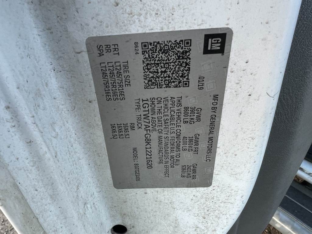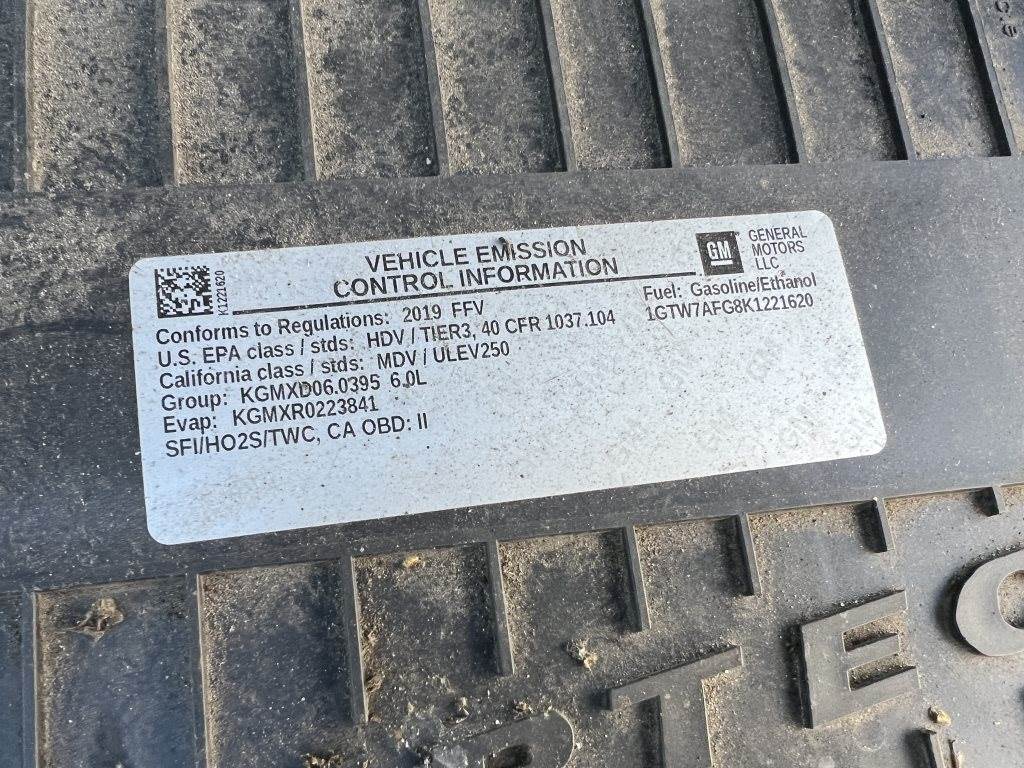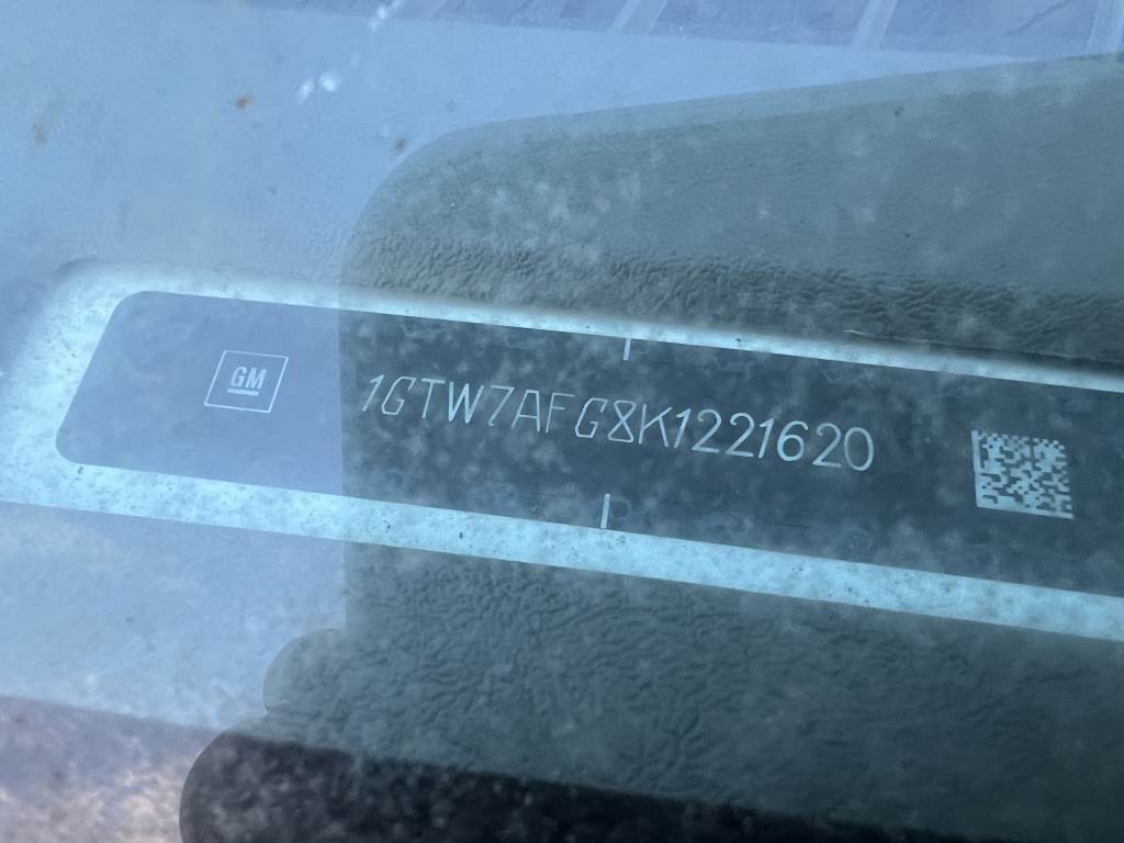 Location: Washougal WA ***City Government Surplus*** VIN: 1GTW7AFG8K1221620 Engine: 6.0L 8cyl Gas Transmission: Automatic Running boards, cab divider, power windows, power locks, 5,301 engine hours, cruise control, A/C, AMFM, rearview camera, spring suspension, LT245/75R16 tires. Miles: 250,873