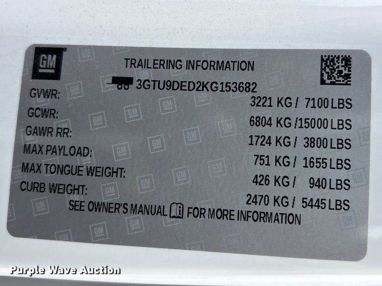 VIN: 3GTU9DED2KG153682