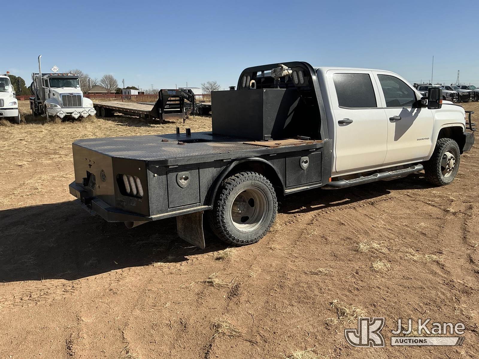 2019 GMC Sierra 3500HD Crew-Cab Flatbed Truck, 6.6L diesel, Auto, 4wd, A/C, with fuel transfer tank, (129,804 miles) (Runs & Moves) (Jump To Start, Does Not Stay Running Once Jumpstart Is Removed, Check Engine Light On, Hood Damage Dents, Passenger Tire Well Guard Is Missing, Passenger Light Assembly Damaged,) This is a Titled Item NOTE: This unit is being sold AS IS/WHERE IS via Timed Auction and is located in Stanton, TX. For more information & removal arrangements please contact Aeon Downey @ (915) 341-6825. (Buyer is responsible for removal. Assistance by consignor or JJ Kane Auctions is not assured.)