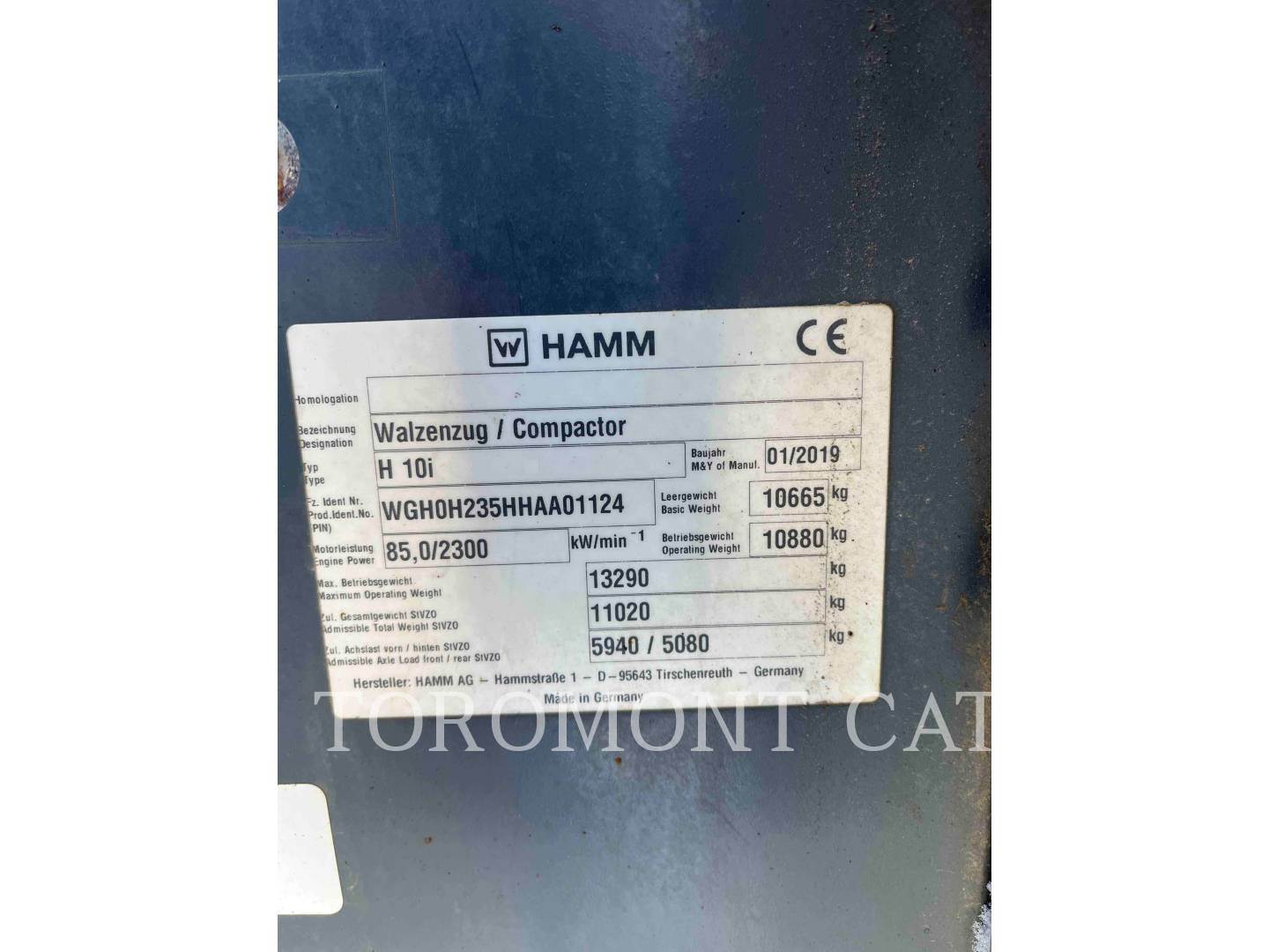 2019 Hamm H 10i Smooth Drum Roller Compactor