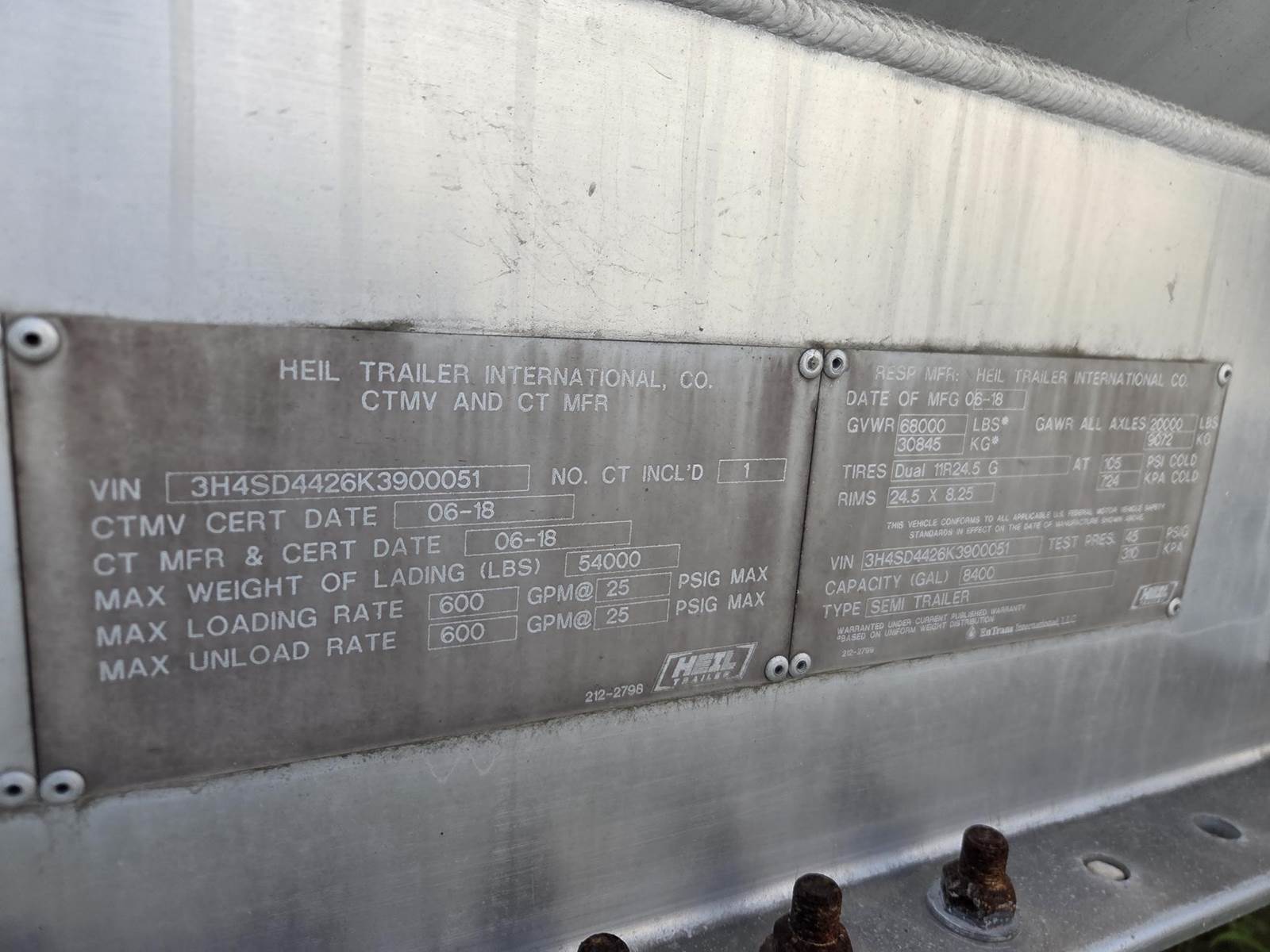 Stock Number 4212, -DOT 407, -8,400 Gallon Capacity, -Single Compartment, -5454 Aluminum tank, -4 inch Roper pump, -Civacon vapor system, ...