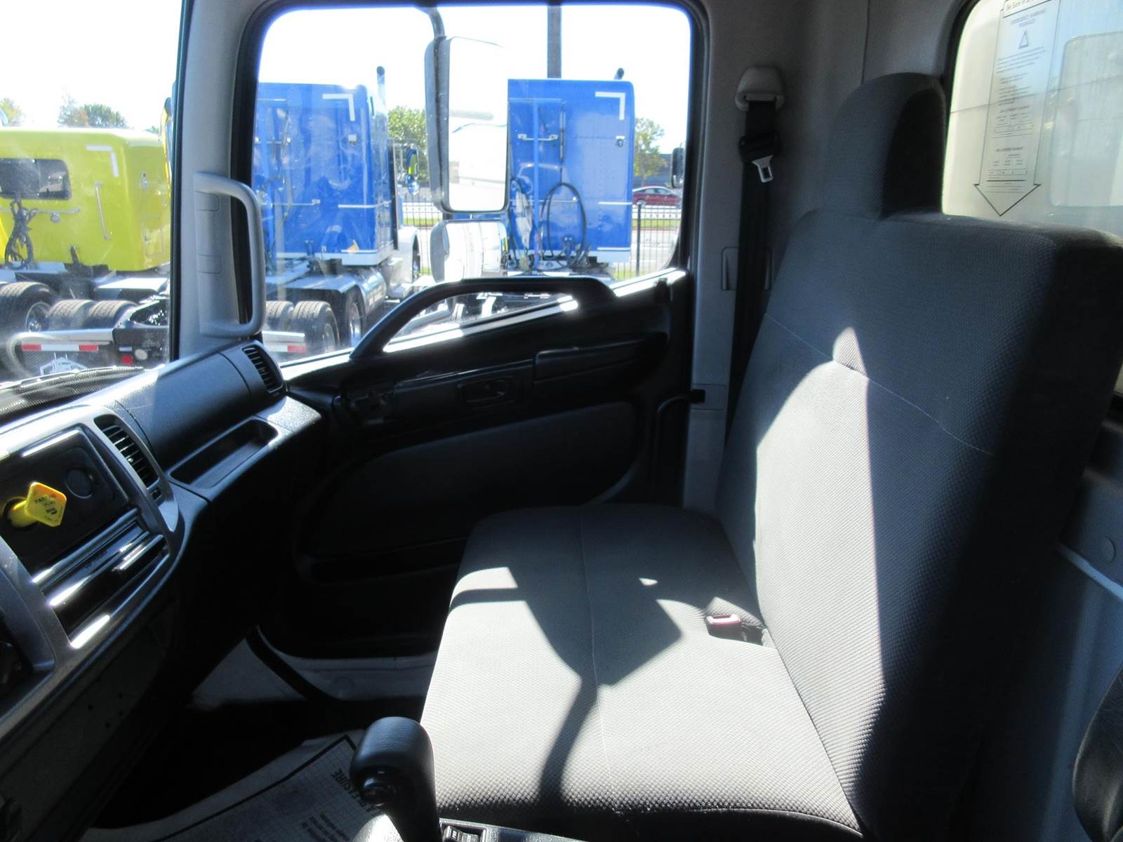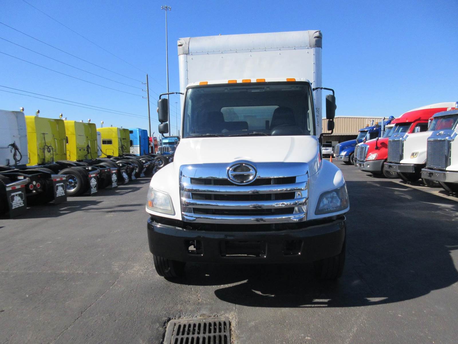 HINO BOX TRUCK, NON CDL! HINO J08E-WU ENGINE, 230HP, 6 SPEED ALLISON AUTO TRANSMISSION, AIR RIDE SUSPENSION, SIDE DOOR, 4 E TRACKS, 3,500LB PALFINGER ELECTRIC LIFT GATE, GOOD RUBBER, READY TO WORK!