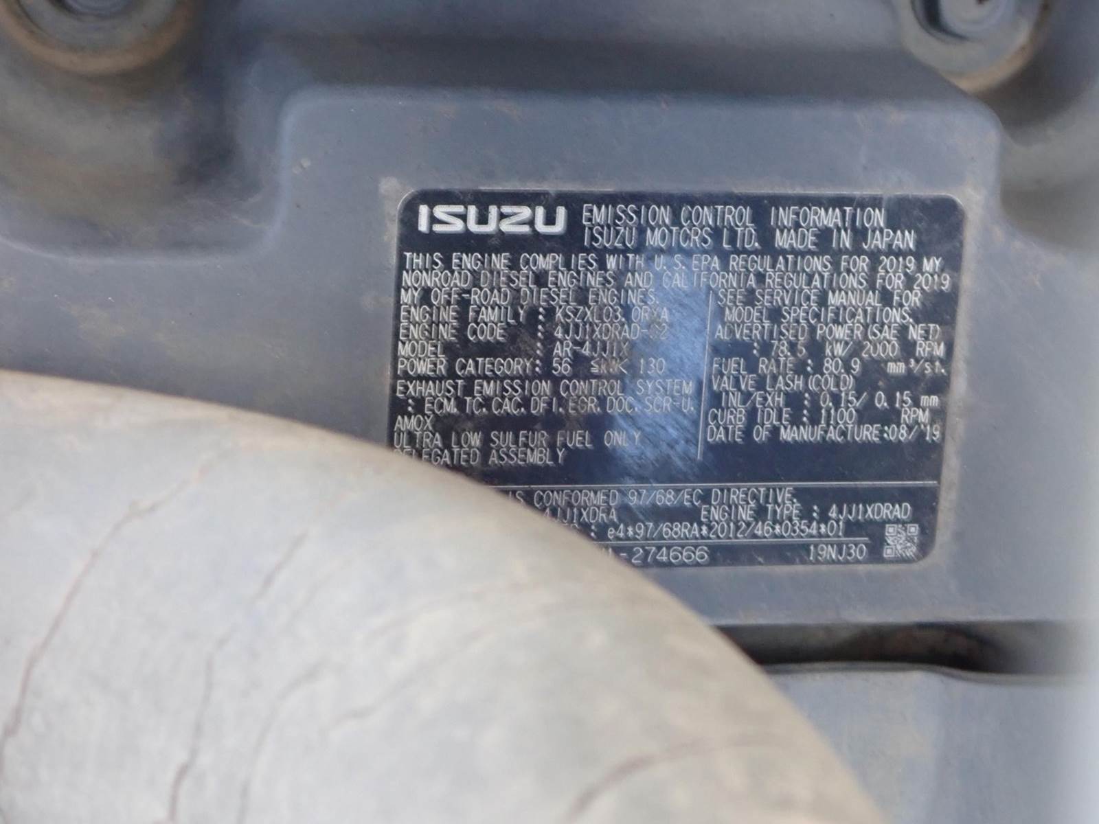 35" bucket, auxiliary hydraulics, a/c, good u/c, 4 cyl Isuzu turbo, 105 hp, backup & side cameras, 32k lbs