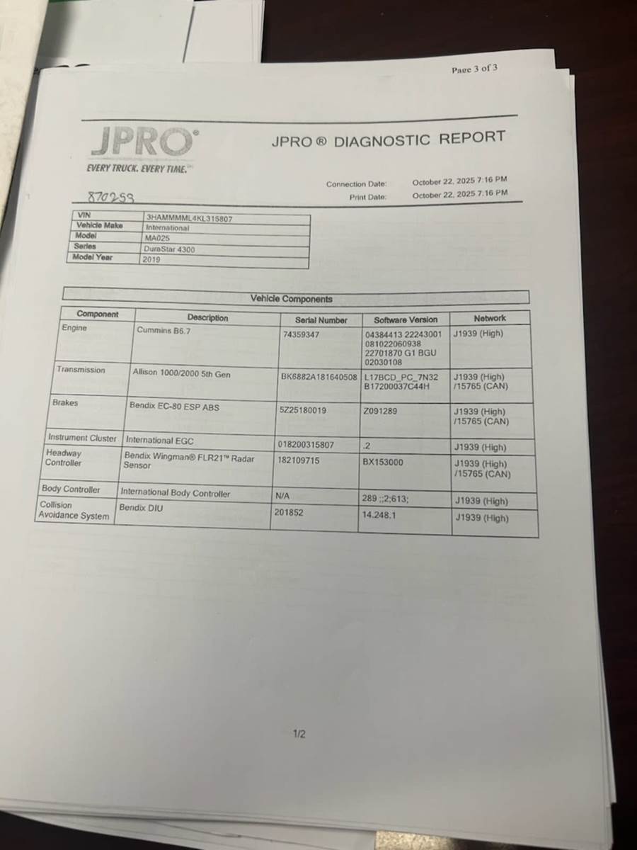 2019 International 4300 26 ft Box Truck - 240HP, 7 Speed Automatic, Roll up Door, Liftgate
