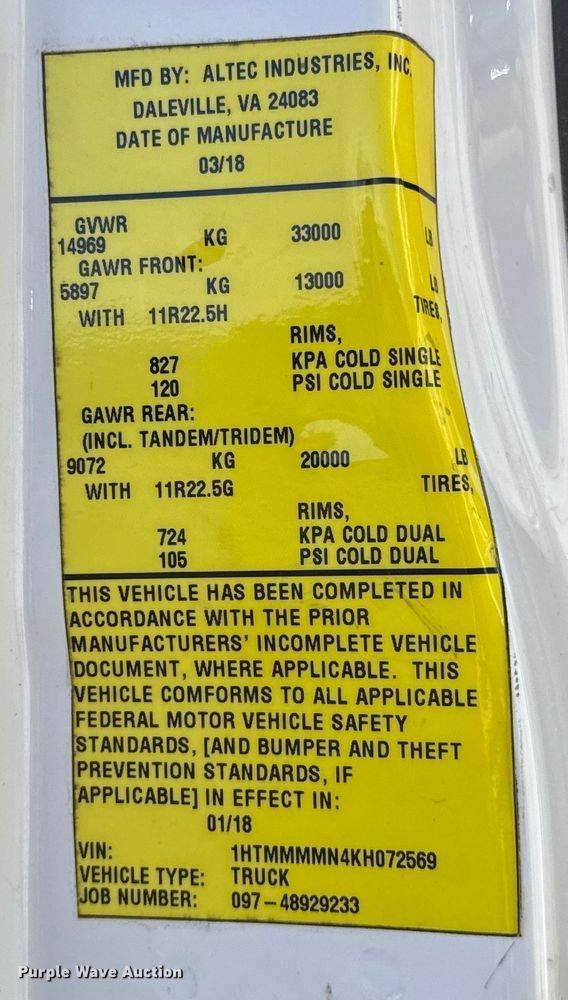 VIN: 1HTMMMMN4KH072569