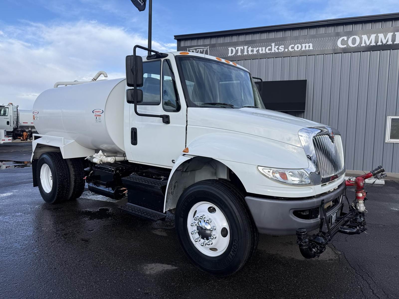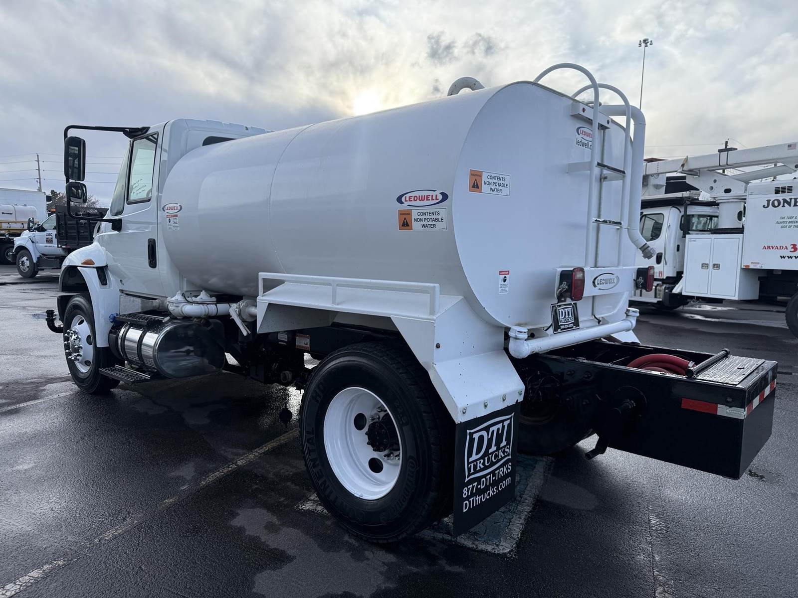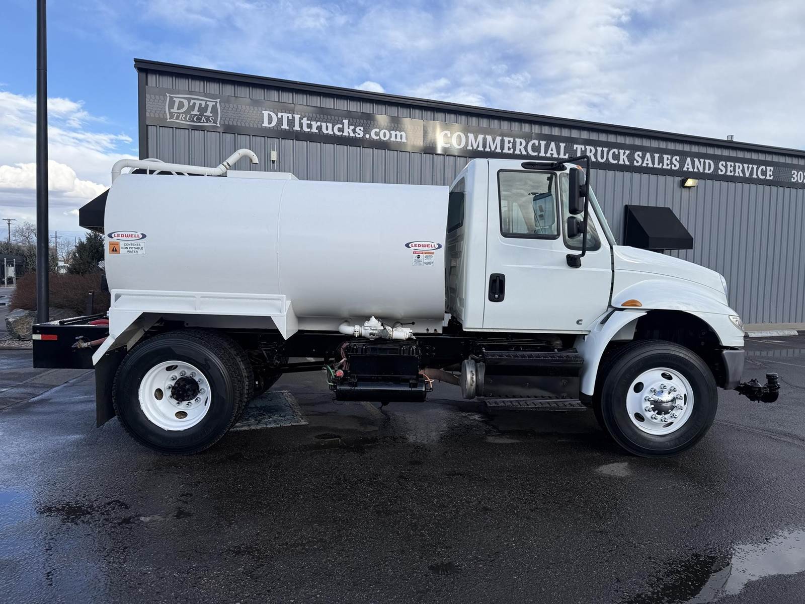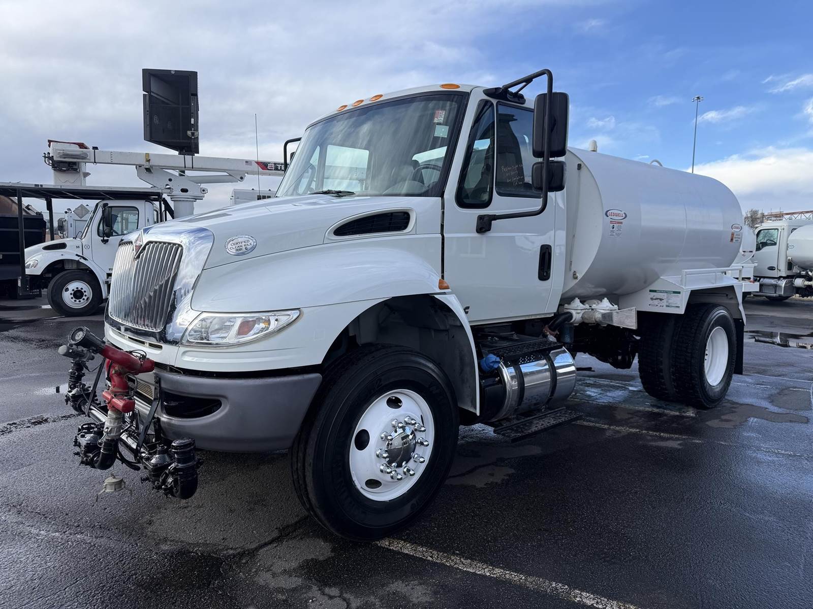 2019 International 4300 Single Axle 2,000 Gallon Water Truck, 6.7L Cummins Turbo Diesel Engine, 200 HP, Allison 5 Speed Automatic Transmission, ONLY 8,902 Miles & 2,571 Engine Hours, 33K GVWR (13K Steer Axle, 20K Drive Axle), 5.57 Ratio, Spring Suspension, 164” Wheel Base, 98” CTA, 11R22.5 Tires All Mounted On Steel Wheels, 50 Gallon Aluminum Diesel Fuel Tank, CARB Compliant, Air Brakes, Air Conditioning, Cruise Control, Bluetooth Radio, Air Ride Cab, Air Ride Driver Seat, Ledwell 2,000 Gallon Water Tank, Epoxy Lined, (5) Air Operated Spray Heads, Rear Mounted Fireman’s Hose, Front Spray Bar Mounted Water Cannon. This Low Mileage International 2,000 Gallon Water Truck Is Available At DTI Trucks In Denver, CO. Stock #17986D. Call Or Text Brent For More Information (303) > 598 > 1923