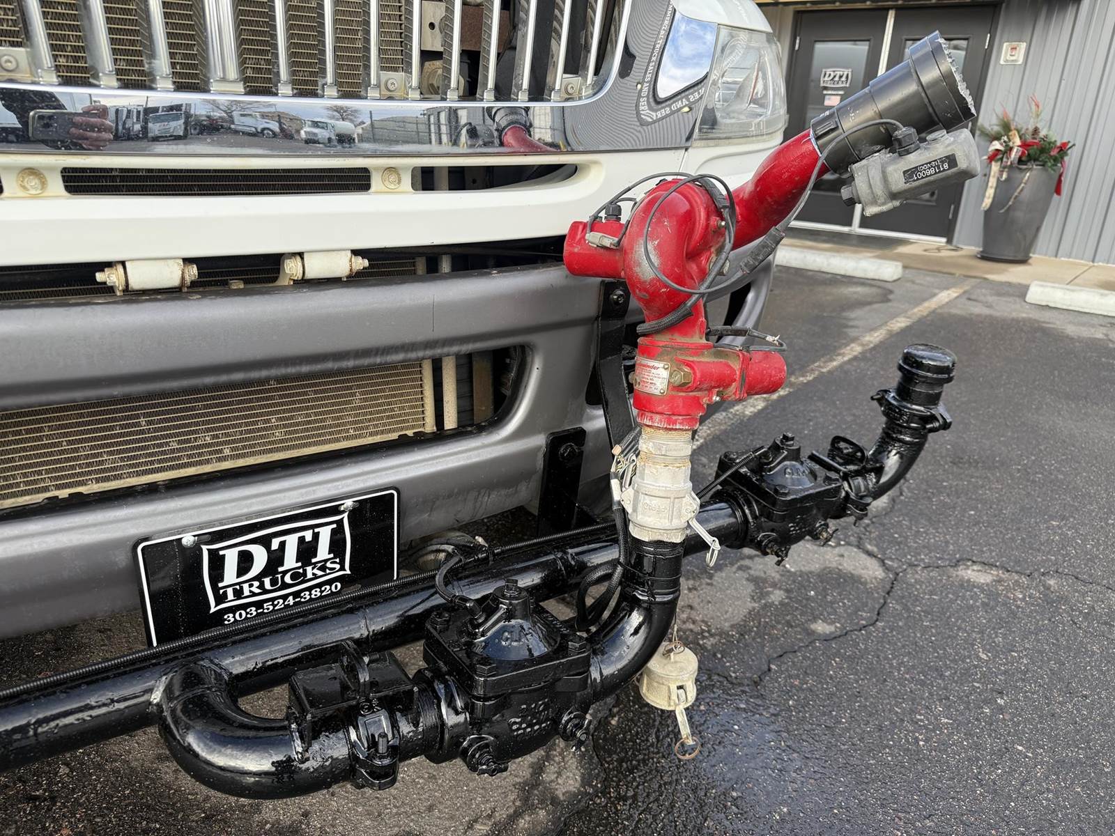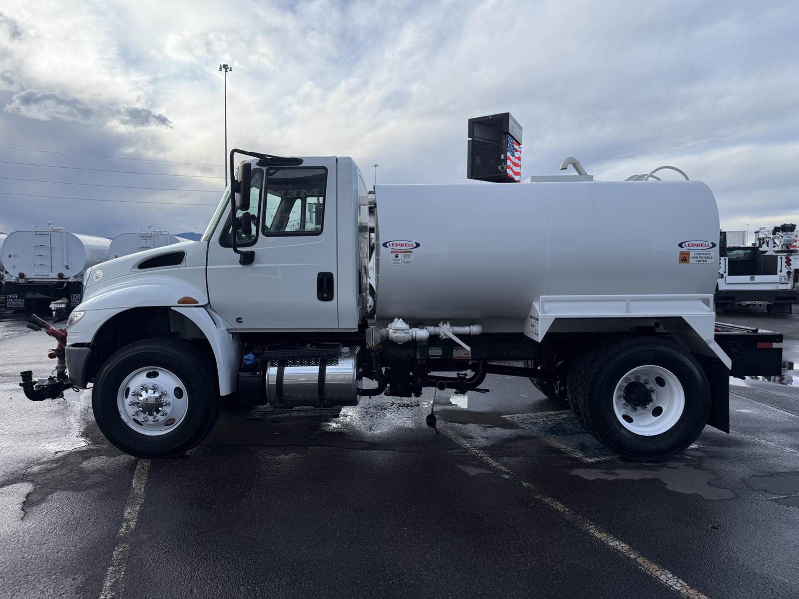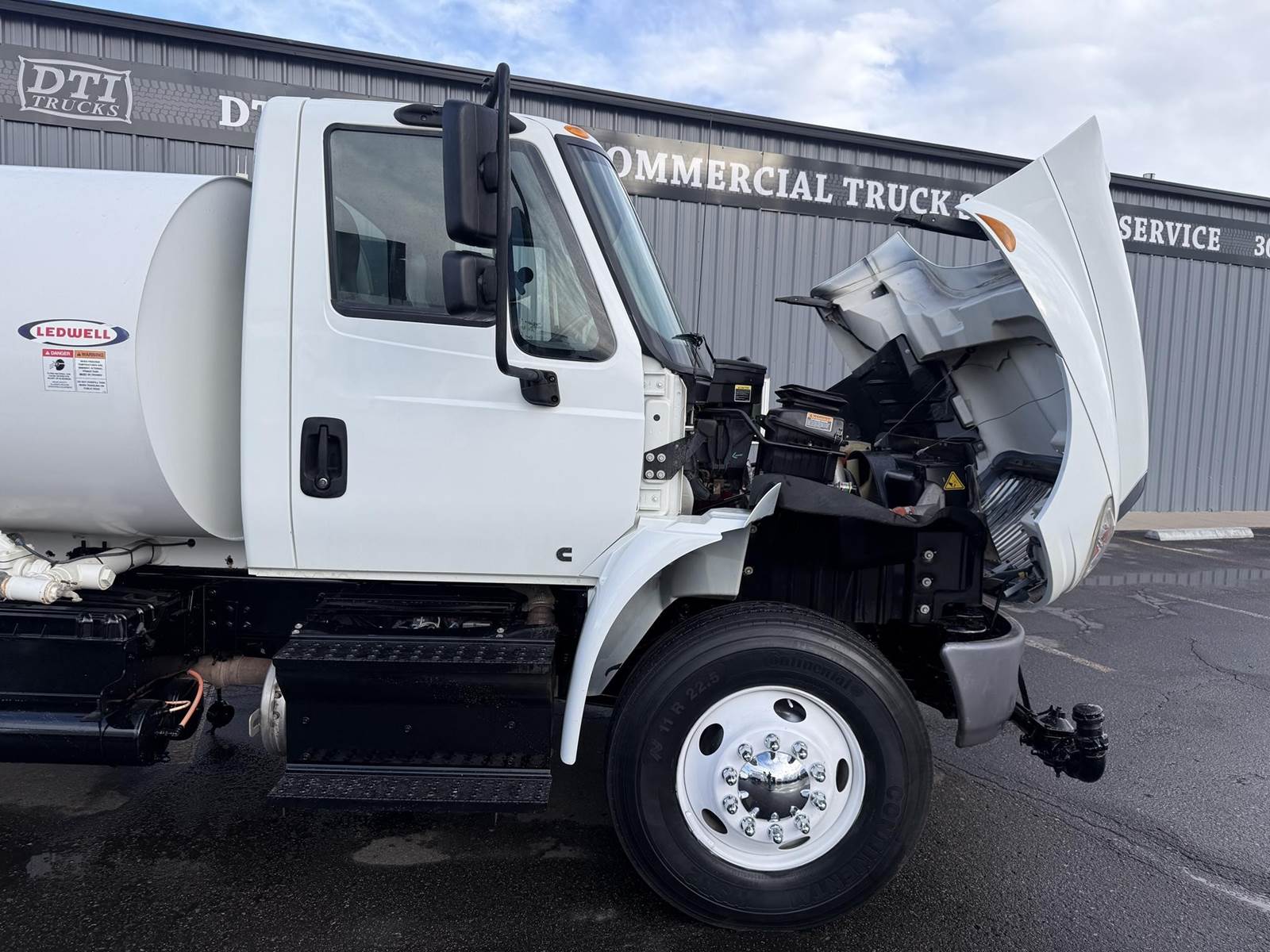 2019 International 4300 Single Axle 2,000 Gallon Water Truck, 6.7L Cummins Turbo Diesel Engine, 200 HP, Allison 5 Speed Automatic Transmission, ONLY 8,902 Miles & 2,571 Engine Hours, 33K GVWR (13K Steer Axle, 20K Drive Axle), 5.57 Ratio, Spring Suspension, 164” Wheel Base, 98” CTA, 11R22.5 Tires All Mounted On Steel Wheels, 50 Gallon Aluminum Diesel Fuel Tank, CARB Compliant, Air Brakes, Air Conditioning, Cruise Control, Bluetooth Radio, Air Ride Cab, Air Ride Driver Seat, Ledwell 2,000 Gallon Water Tank, Epoxy Lined, (5) Air Operated Spray Heads, Rear Mounted Fireman’s Hose, Front Spray Bar Mounted Water Cannon. This Low Mileage International 2,000 Gallon Water Truck Is Available At DTI Trucks In Denver, CO. Stock #17986D. Call Or Text Brent For More Information (303) > 598 > 1923