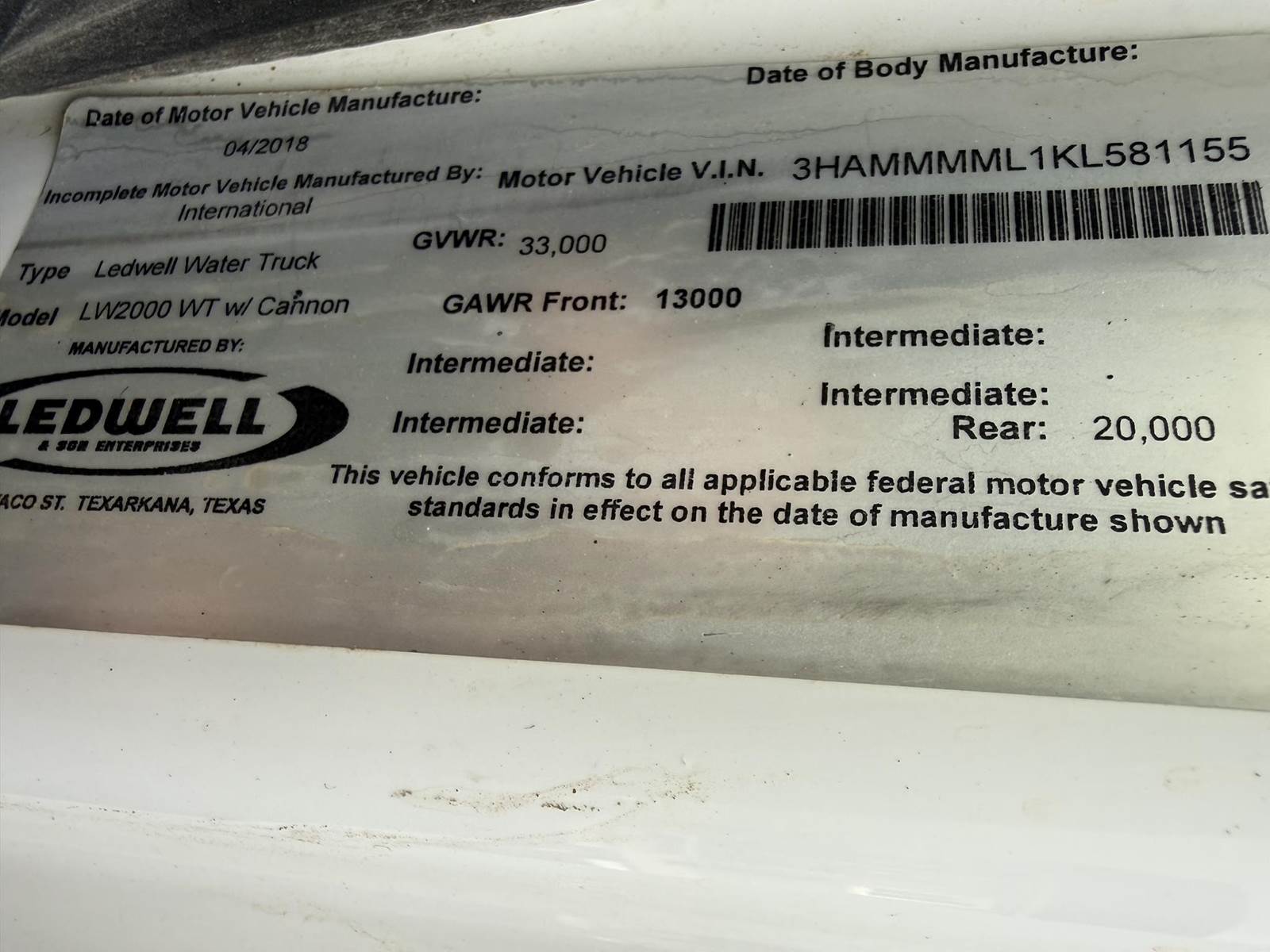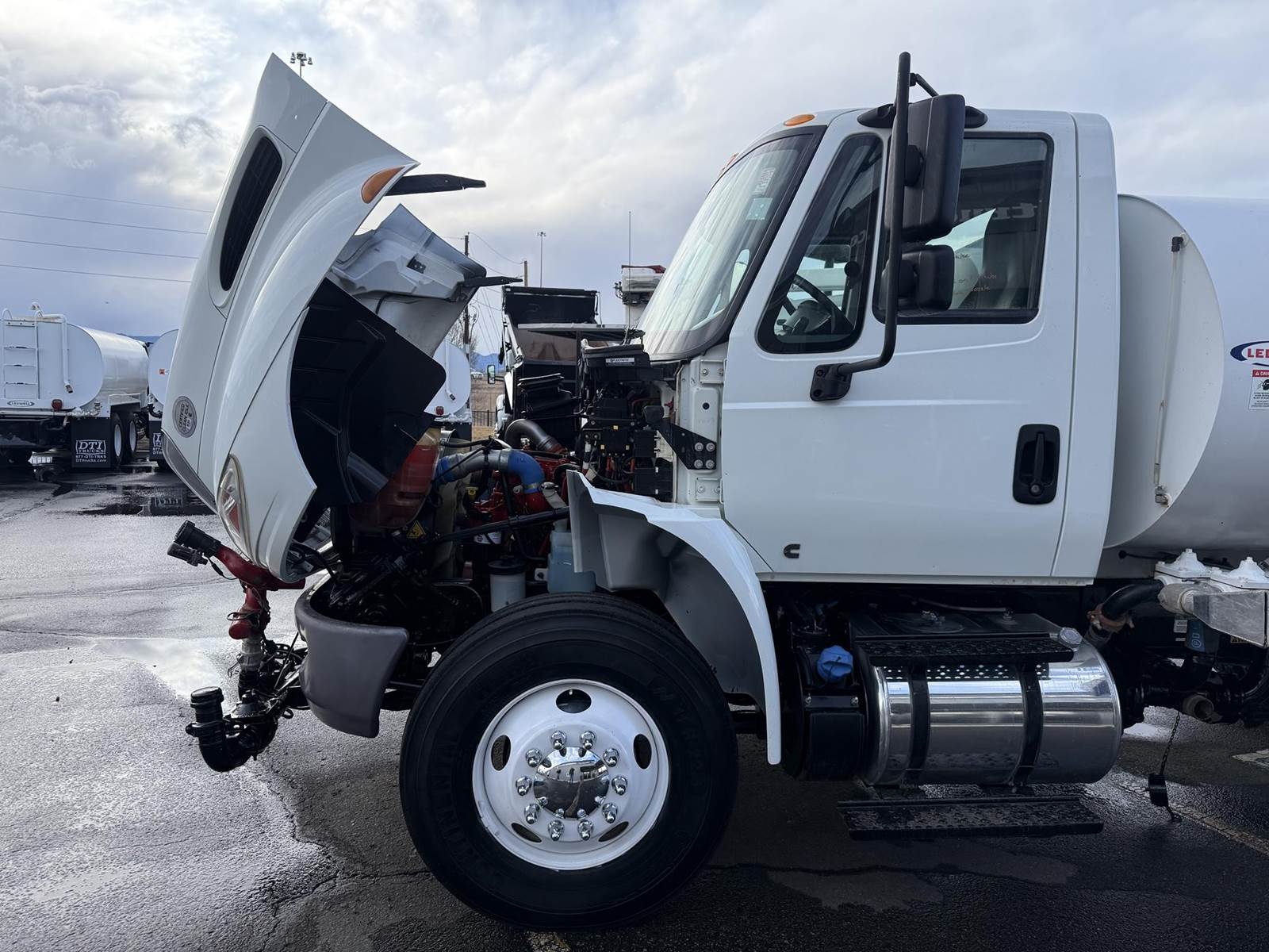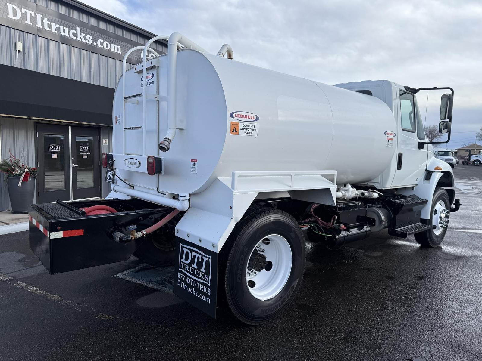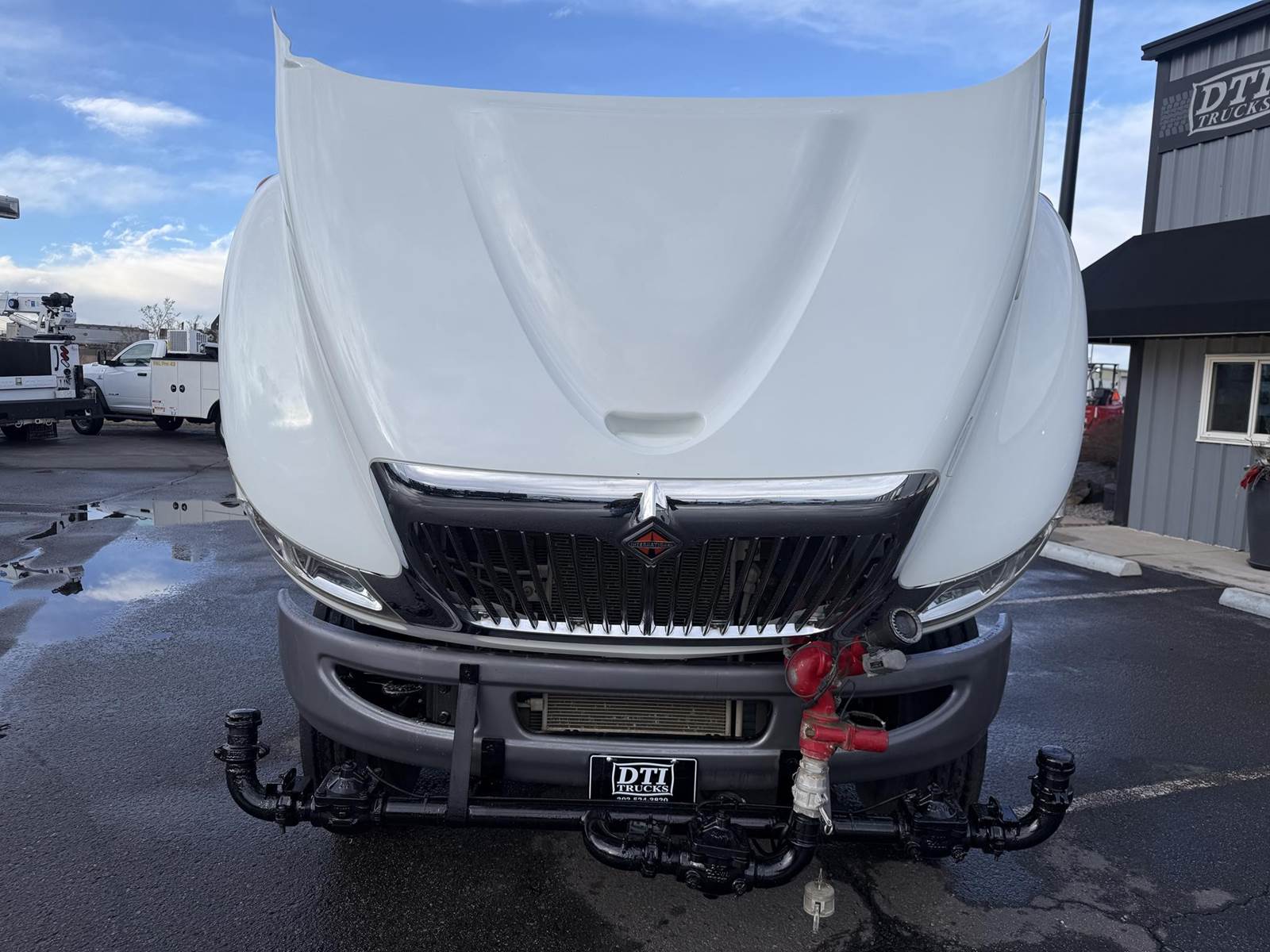 2019 International 4300 Single Axle 2,000 Gallon Water Truck, 6.7L Cummins Turbo Diesel Engine, 200 HP, Allison 5 Speed Automatic Transmission, ONLY 8,902 Miles & 2,571 Engine Hours, 33K GVWR (13K Steer Axle, 20K Drive Axle), 5.57 Ratio, Spring Suspension, 164” Wheel Base, 98” CTA, 11R22.5 Tires All Mounted On Steel Wheels, 50 Gallon Aluminum Diesel Fuel Tank, CARB Compliant, Air Brakes, Air Conditioning, Cruise Control, Bluetooth Radio, Air Ride Cab, Air Ride Driver Seat, Ledwell 2,000 Gallon Water Tank, Epoxy Lined, (5) Air Operated Spray Heads, Rear Mounted Fireman’s Hose, Front Spray Bar Mounted Water Cannon. This Low Mileage International 2,000 Gallon Water Truck Is Available At DTI Trucks In Denver, CO. Stock #17986D. Call Or Text Brent For More Information (303) > 598 > 1923