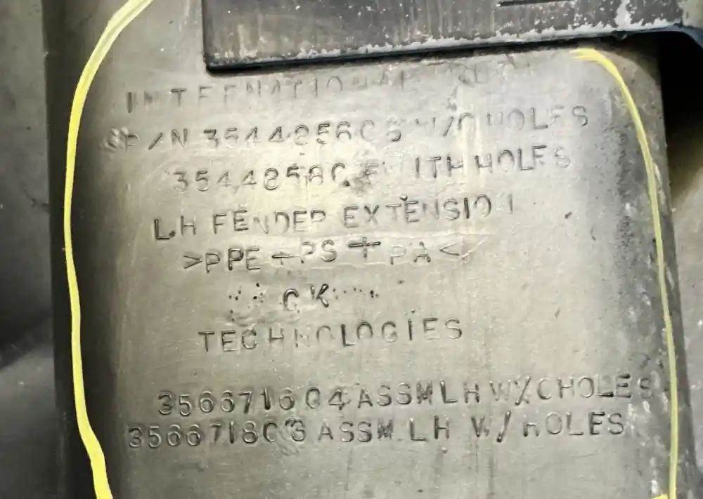 2019 International DuraStar 4400 Driver Side Fender Extension, P/N 3544856C7, 3544856C5, 3566716C5, 3566716C4.