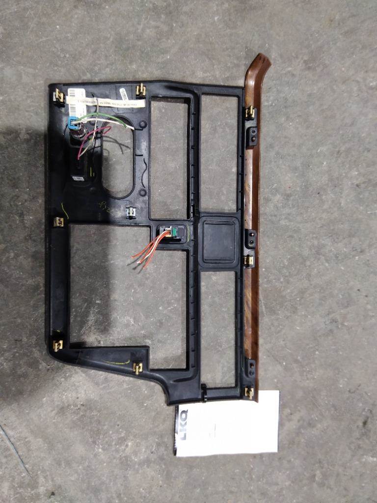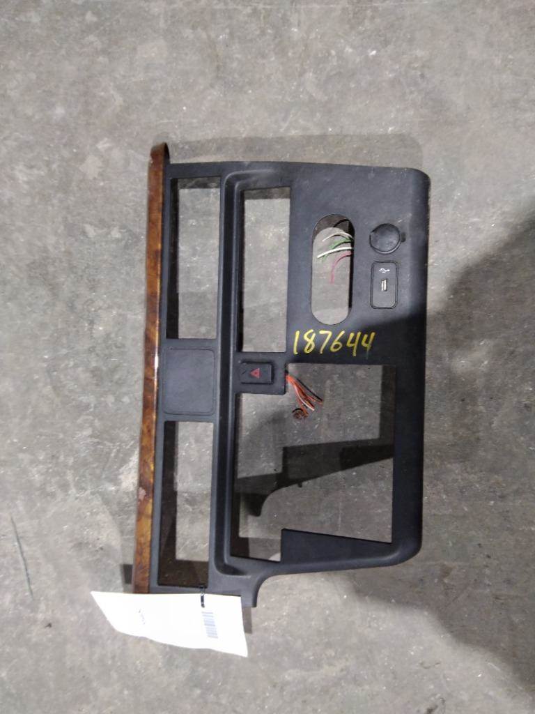 USED INTERIOR DASH PANEL TRIM OFF A 2019 INTERNATIONAL LT. PLASTIC MATERIAL, GREY WITH BROWN WOOD GRAIN PATTERN, 22" IN LENGTH.