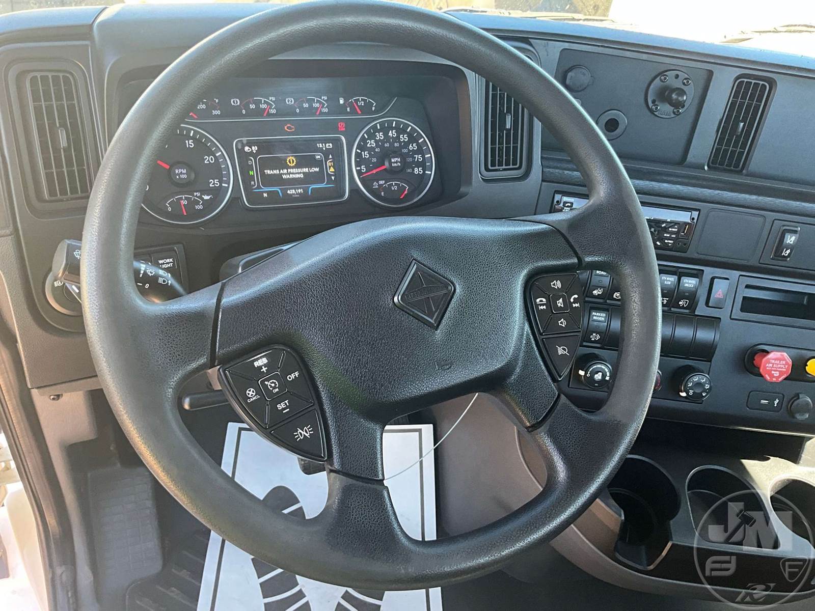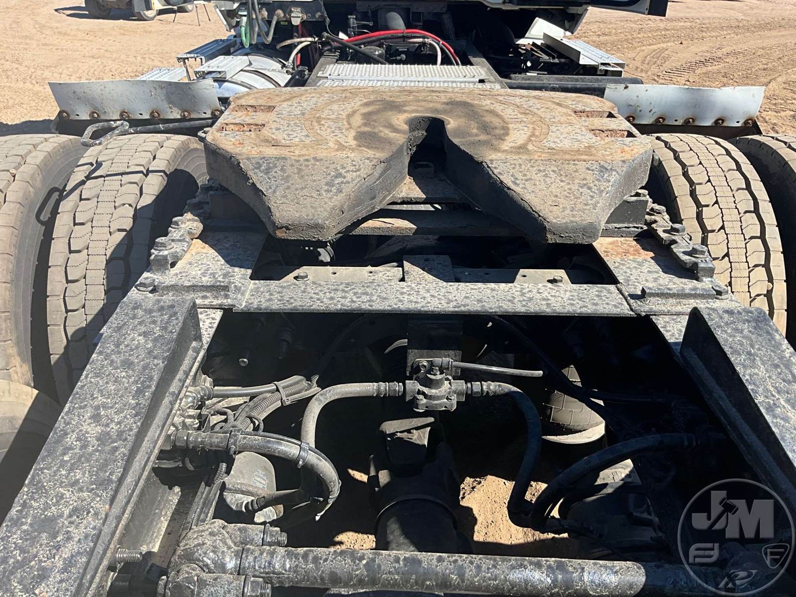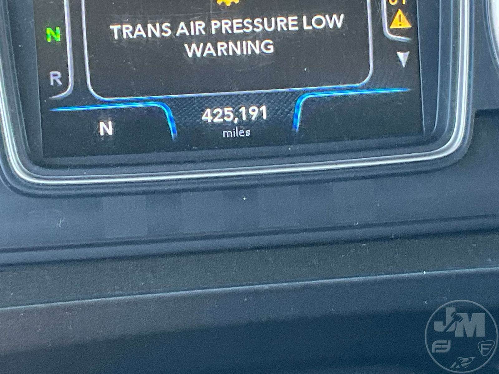 TANDEM AXLE DAY CAB TRUCK TRACTOR, CUMMINS, X15, 400 HP, AUTOMATIC, AIR RIDE SUSPENSION, DRUM, 176 " WB, C/A: 101", 12K FRONTS, 40K REARS, 52350 LBS GVWR, AIR SLIDE FIFTH WHEEL, A/C, AIR DRIVERS SEAT, CRUISE CONTROL, POWER WINDOWS, POWER DOOR LOCKS, POWER MIRRORS, ENGINE BRAKE, DIFF LOCK, AIR RIDE CAB, ALUM DISC WHEELS, 295/75R22.5 TIRES, HOUR METER READS: 9735, ODOMETER READS: 425191