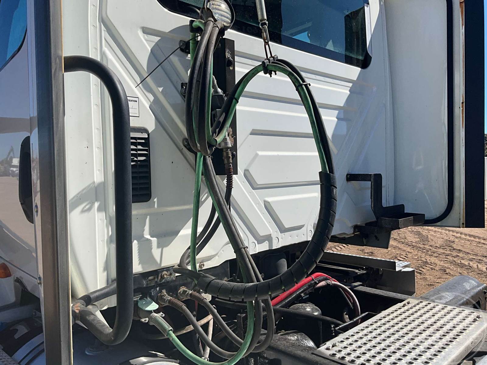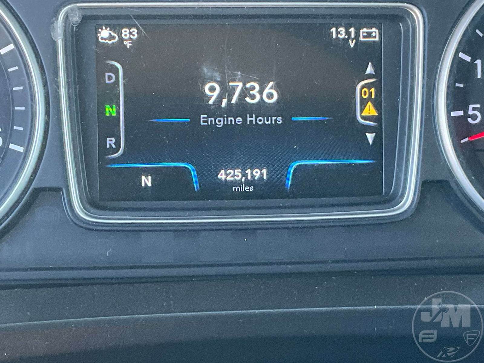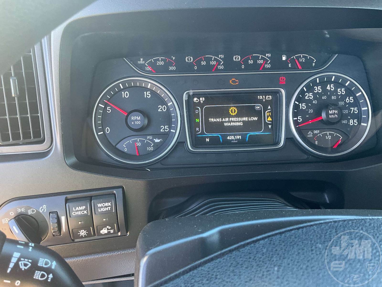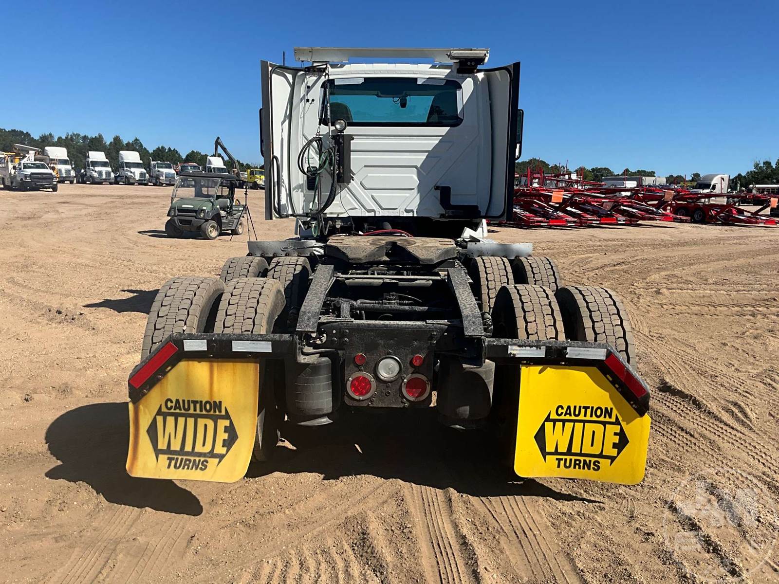 TANDEM AXLE DAY CAB TRUCK TRACTOR, CUMMINS, X15, 400 HP, AUTOMATIC, AIR RIDE SUSPENSION, DRUM, 176 " WB, C/A: 101", 12K FRONTS, 40K REARS, 52350 LBS GVWR, AIR SLIDE FIFTH WHEEL, A/C, AIR DRIVERS SEAT, CRUISE CONTROL, POWER WINDOWS, POWER DOOR LOCKS, POWER MIRRORS, ENGINE BRAKE, DIFF LOCK, AIR RIDE CAB, ALUM DISC WHEELS, 295/75R22.5 TIRES, HOUR METER READS: 9735, ODOMETER READS: 425191