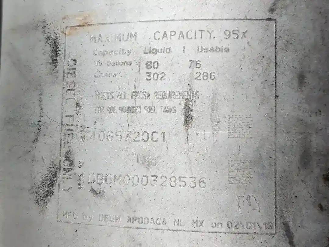 (Used) 2019 International LT625, FUEL TANK- Part Number: 4065720C1, Serial Number: DBGM000328536, Side: Driver Left Side, Capacity: 80 Gallons, Material: Aluminum, Shape: Cylinder, Dimensions: L=36", D=26.5", For more information about this item, give us a call. We ship Worldwide! (CRG HEAVY TRUCK PARTS) 929 W PULASKI HWY ELKTON, MD 21921, Capacity: 80 Gallons, Dimensions: L=36", D=26.5", Material: Aluminum, Shape: Cylinder