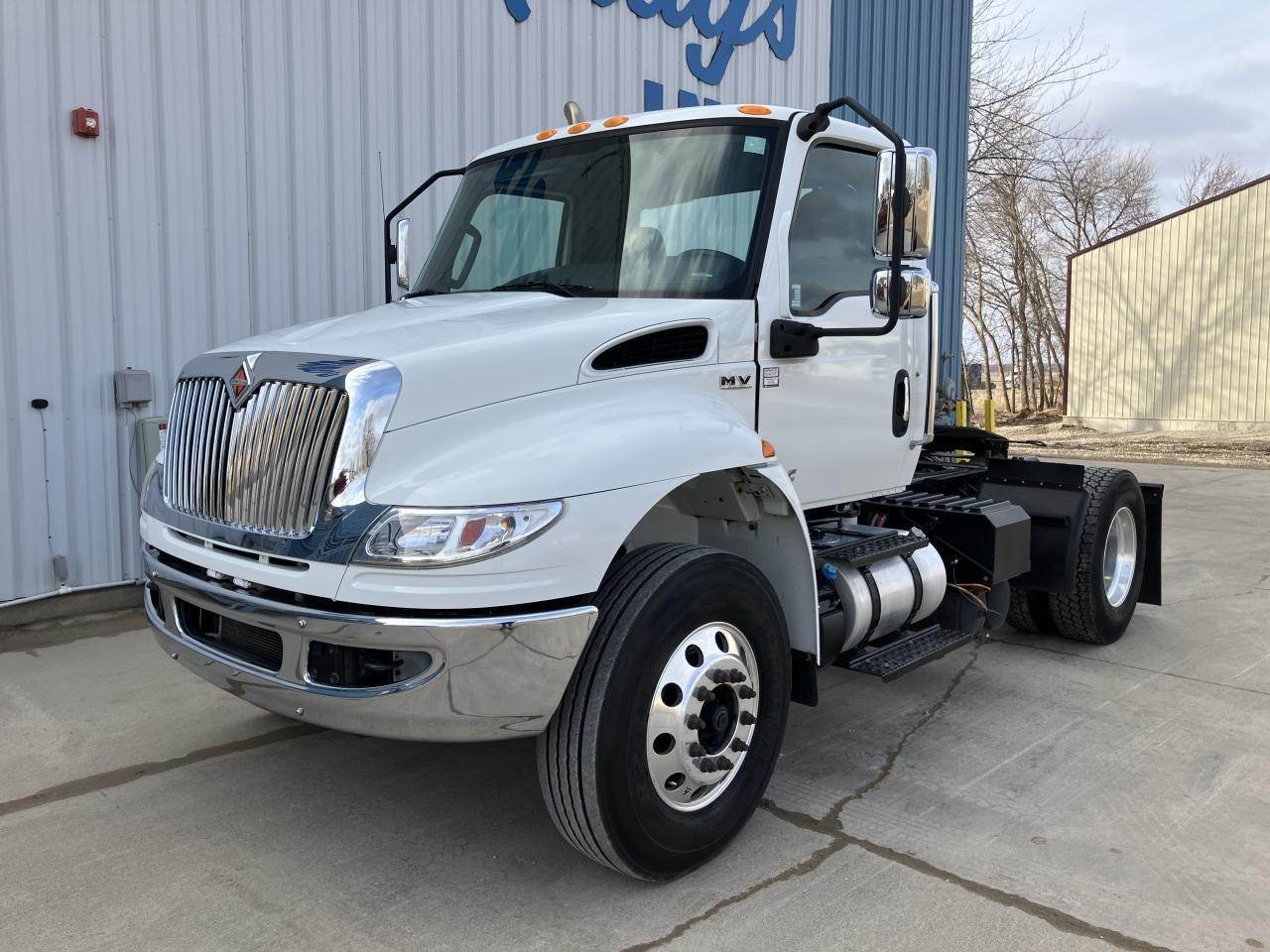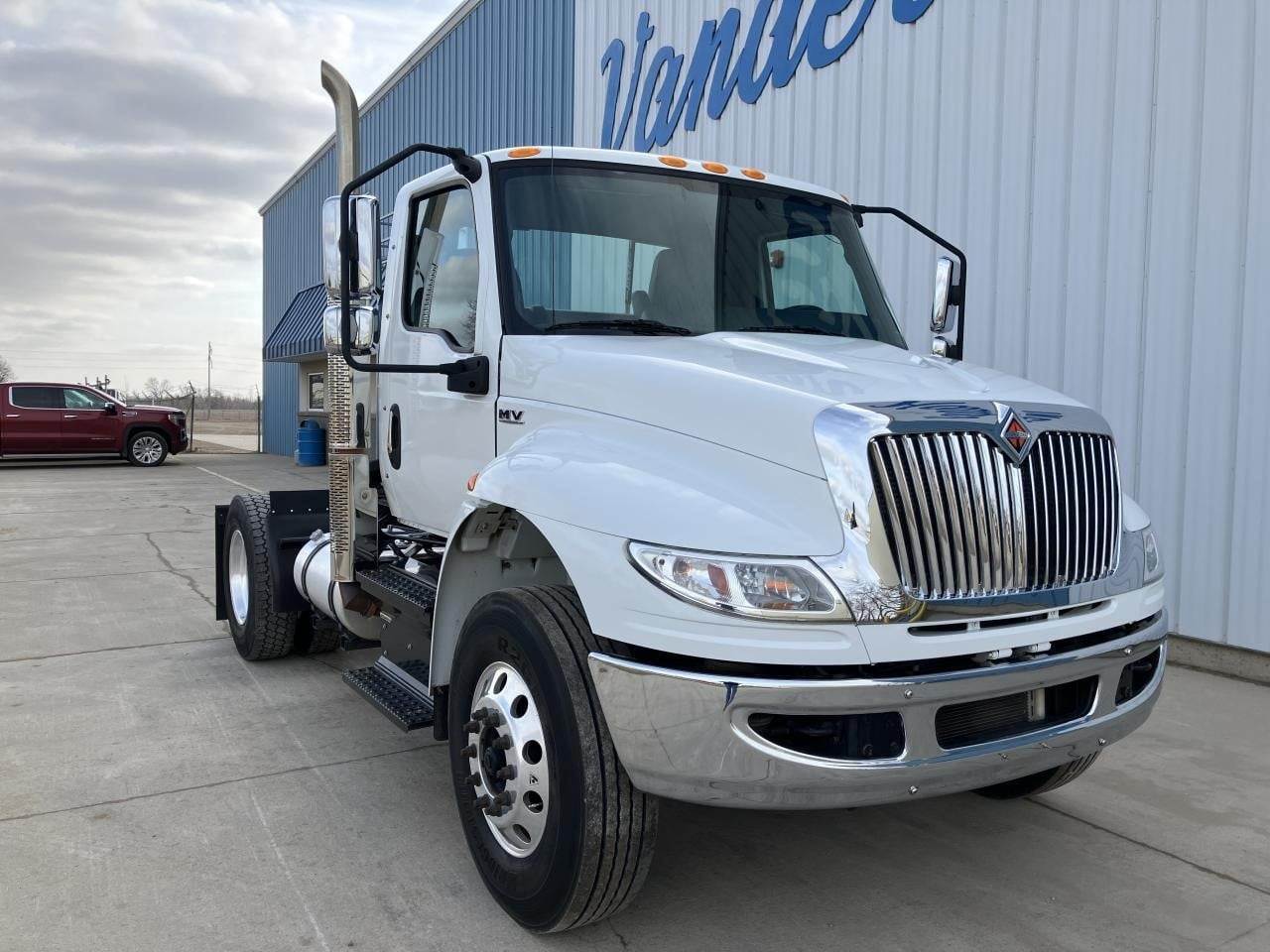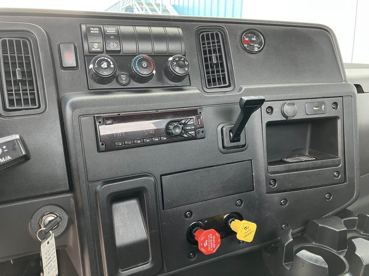 2019 International MV-607 Single Axle Day Cab, Cummins L9 300HP Engine, Automatic Allison 3000 RDS Transmission, Spring Suspension, 32,000 GVW, 12,000# MFS-12 Front Axle, 20,000# Meritor RS24160 Rear Axle, 5.57 Ratio, Air Brakes 50%, 11R22.5 Tires (Front: 10/32 - Rear: 11/32), Aluminum Wheels, Air Ride Seats, AC, Cruise, 5th-Wheels Stationary, Power Steering