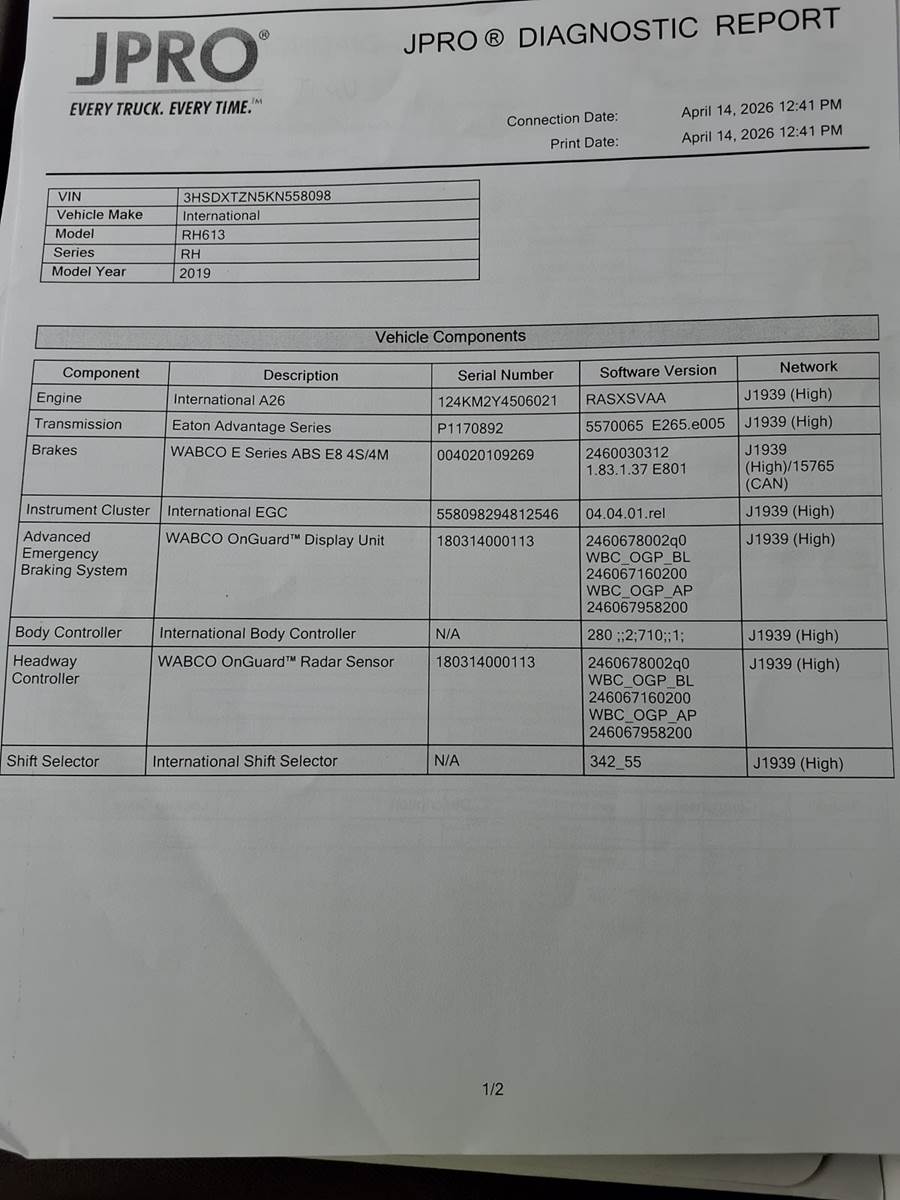 2019 International RH613 Single Axle Day Cab Truck - 410HP, 10 Speed Automatic