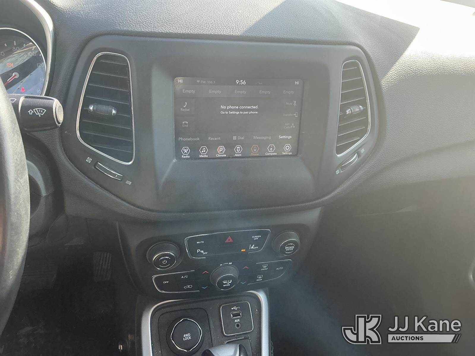 2019 Jeep Compass 4x4 4-Door Sport Utility Vehicle, 4-cyl gas, Auto, A/C, (82,134 miles) (Wrecked) (Runs & Moves) (Check Engine Light On, Coolant Leak, Windshield Cracked, Body Damage) This is a Titled Item NOTE: This unit is being sold AS IS/WHERE IS via Timed Auction and is located in Fort Wayne, IN. For more information & removal arrangements please contact Office Staff @ (260) 450-9822. Load out by appointment only, Buyer/Hauler must present copy of paid invoice upon arrival. Purchaser acknowledges ALL lots must be removed within (10) business days of Auction, or a storage fee may be incurred. For load out and pick up information, please reference the hauler sheet sent out after purchase. (Buyer is responsible for removal. Assistance by consignor or JJ Kane Auctions is not assured.)