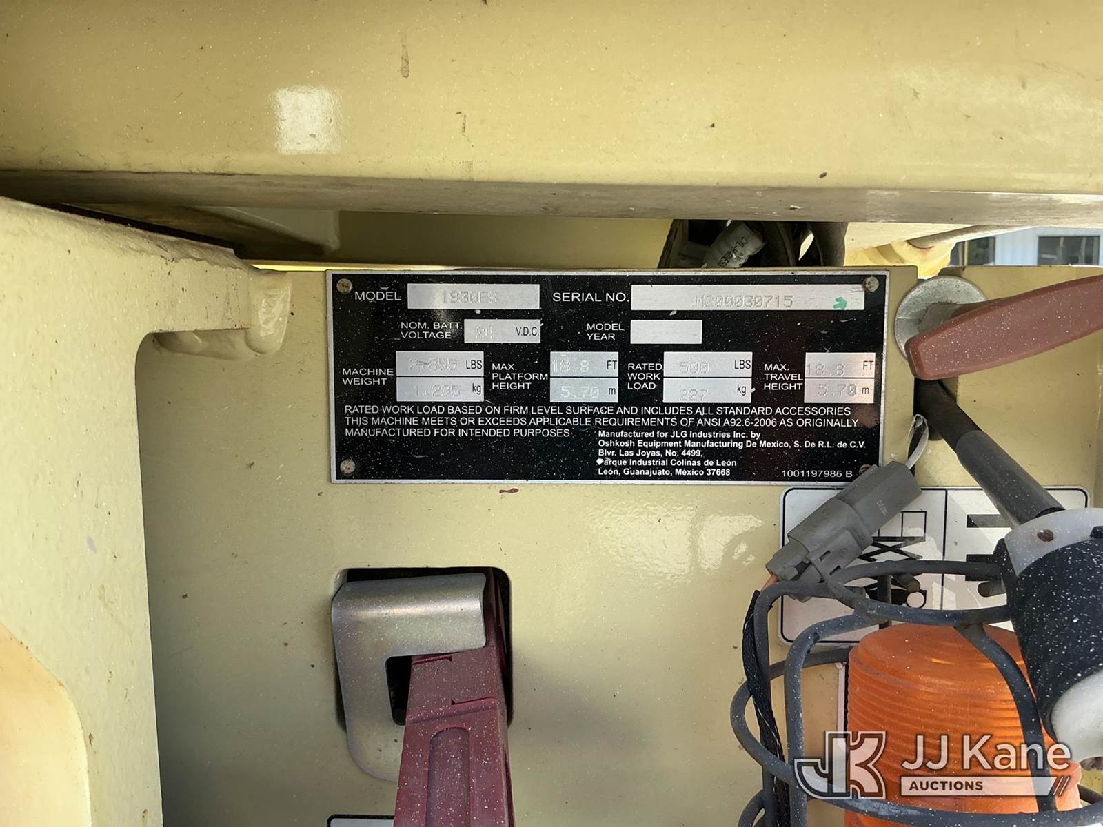 2019 JLG 1930ES Self-Propelled Scissor Lift, s/n M200030715, electric, Hydrostatic, (Runs, Moves, Operates) (Reads 211 hours) NOTE: This unit is being sold AS IS/WHERE IS via Timed Auction and is located in Thonotosassa, FL. Inspection & preview days for this unit are the 2 business days prior to the first day of items closing for this auction, item is located at 11720 N US 301 Thonotosassa, Fl 33592 and hours of operations are 8a-4p. For pre-sale questions, please contact Office Staff @ (813) 986-2485. (Buyer is responsible for removal. Assistance by consignor or JJ Kane Auctions is not assured.)