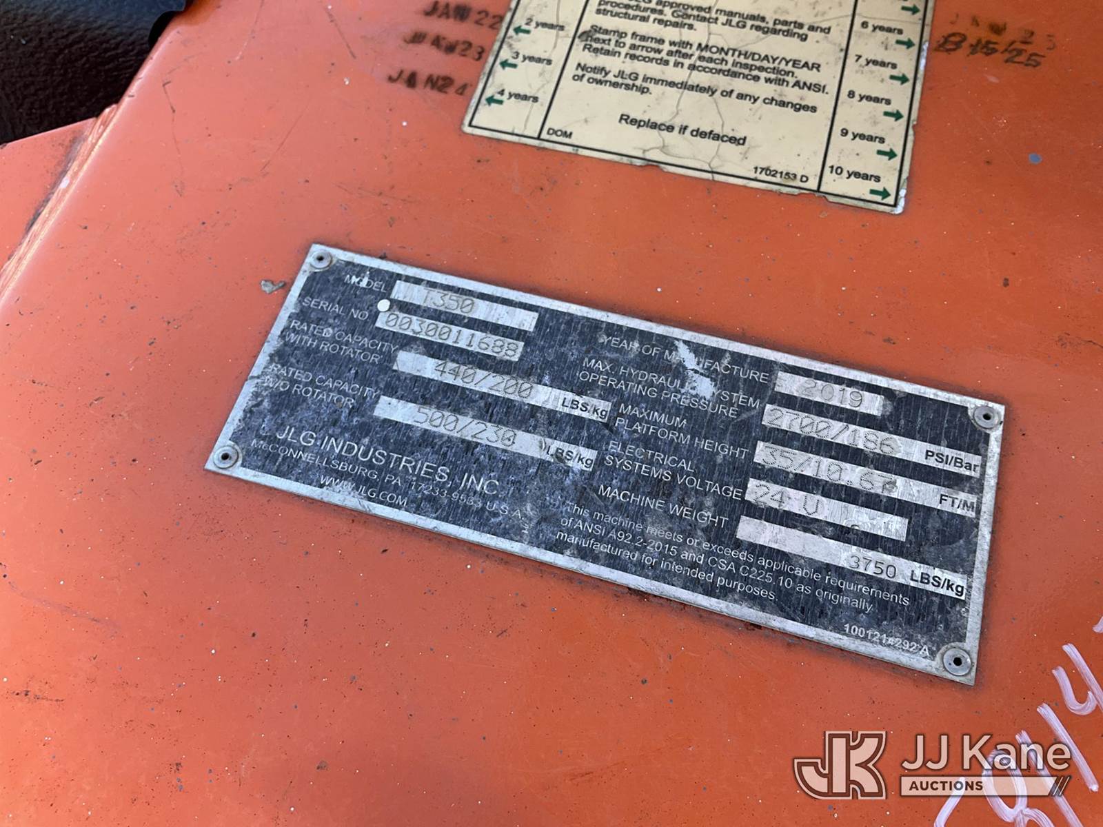 2019 JLG ET350 Portable Man Lift, s/n 30011688, 24v electric, (Batteries not charged, Condition Unknown) (Reads 116 hours) NOTE: This unit is being sold AS IS/WHERE IS via Timed Auction and is located in Rome, NY. Inspection & preview days for this unit are the 2 business days prior to the first day of items closing for this auction, item is located at 5835 Success Dr Rome, NY 13440 and hours of operations are 8a-4p. For pre-sale questions, please contact Ryan Jackson @ (315) 749-3790 or Ryan.Jackson@jjkane.com. (Buyer is responsible for removal. Assistance by consignor or JJ Kane Auctions is not assured.)
