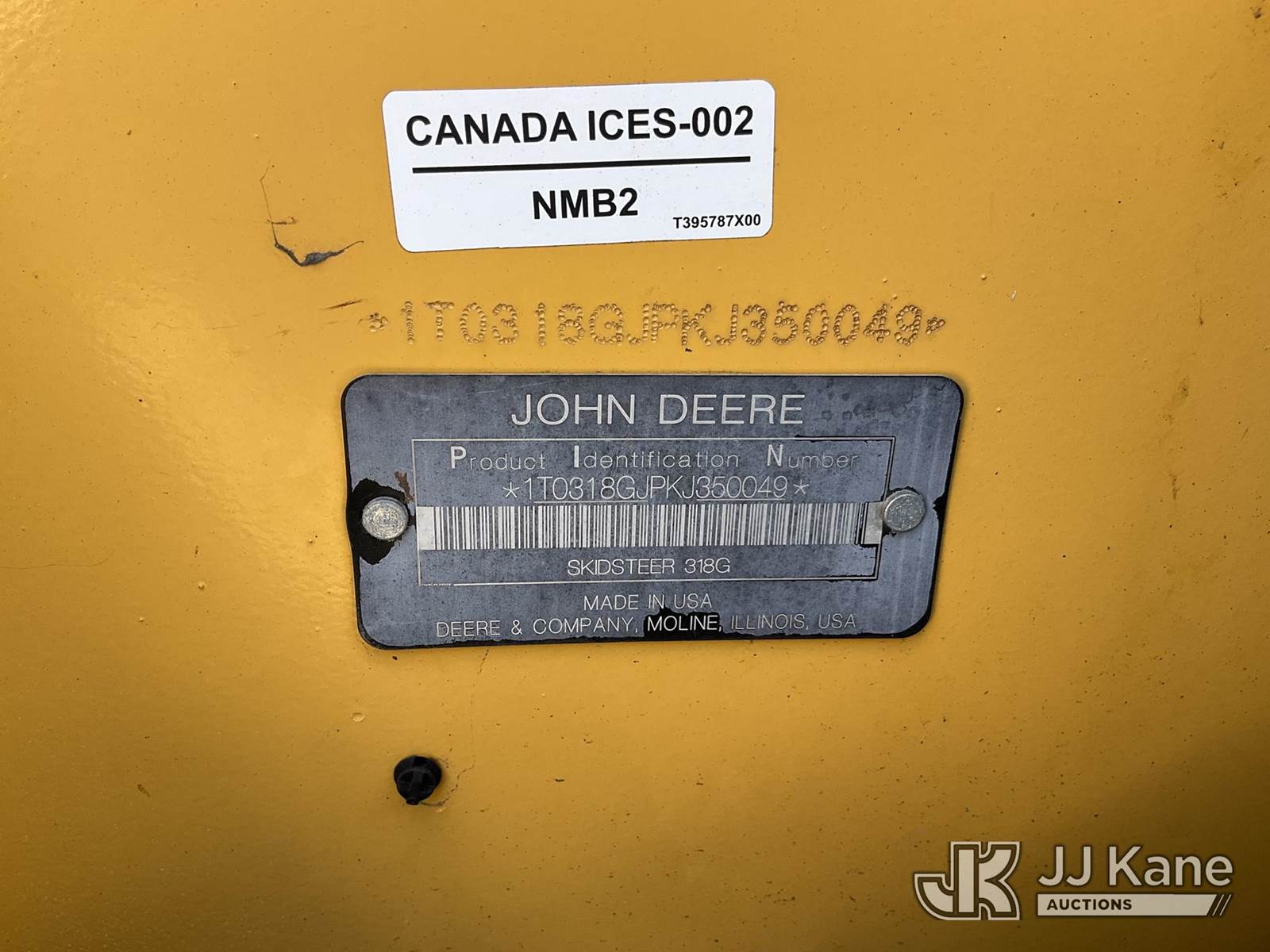 2019 John Deere 318G Rubber Tired Skid Steer Loader, s/n 1T0318GJPKJ350049, J.D. diesel, Hydrostatic, with GP loader bucket, aux hydraulics, (Certificate of Origin Runs, Moves & Operates) (Reads 1,209 hours) NOTE: This unit is being sold AS IS/WHERE IS via Timed Auction and is located in Shrewsbury, MA. Inspection & preview days for this unit are the 2 business days prior to the first day of items closing for this auction, item is located at 11 Fortune Blvd Shrewsbury, MA 01545 and hours of operations are 8a-4p. For pre-sale questions, please contact Rob Gifford @ (508) 864-4126. (Buyer is responsible for removal. Assistance by consignor or JJ Kane Auctions is not assured.)