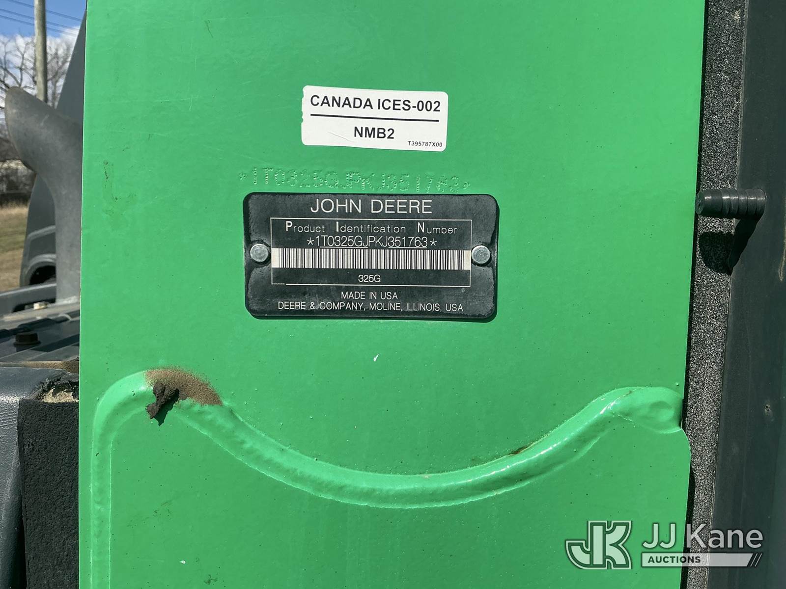 2019 John Deere 325G Crawler Skid Steer Loader, s/n 1T0325GJPKJ351763, Yanmar diesel, Hydrostatic, A/C, with GP loader bucket, aux. hydraulics, EH joystick controls, rubber tracks, EROPS w/ AC, (Runs & Operates) (Reads 2,169 hours) NOTE: This unit is being sold AS IS/WHERE IS via Timed Auction and is located in Fort Wayne, IN. Inspection & preview days for this unit are the 2 business days prior to the first day of items closing for this auction, item is located at 3020 Commercial Rd Fort Wayne, IN 46809 and hours of operations are 8a-4p. For pre-sale questions, please contact Eric Mcintosh @ (260) 205-2483 (Buyer is responsible for removal. Assistance by consignor or JJ Kane Auctions is not assured.)
