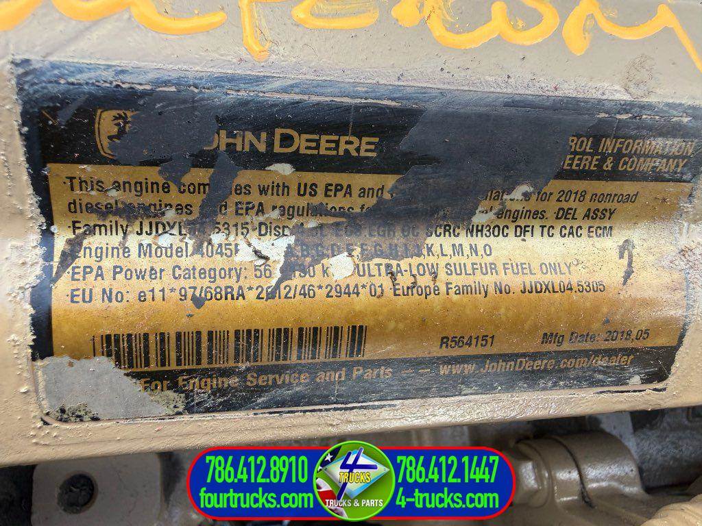 USED 2019 JOHN DEERE 4045HFC ENGINE, 4.5L, 140HP, PE4045U074472, EGR VALVE, TURBO CHARGED, COMPLETE INSPECTED AND TESTED RUNNING GOOD ENGINE, ALSO MANY ENGINES IN STOCK