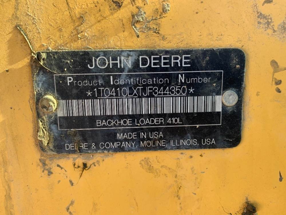 2019 JOHN DEERE 410L LOADER BACKHOE, 4-in-1 bucket, 4x4, cab w/air & heat, extension hoe, rear aux hydraulics, rear q/c. s/n:1T0410LXTJF344350