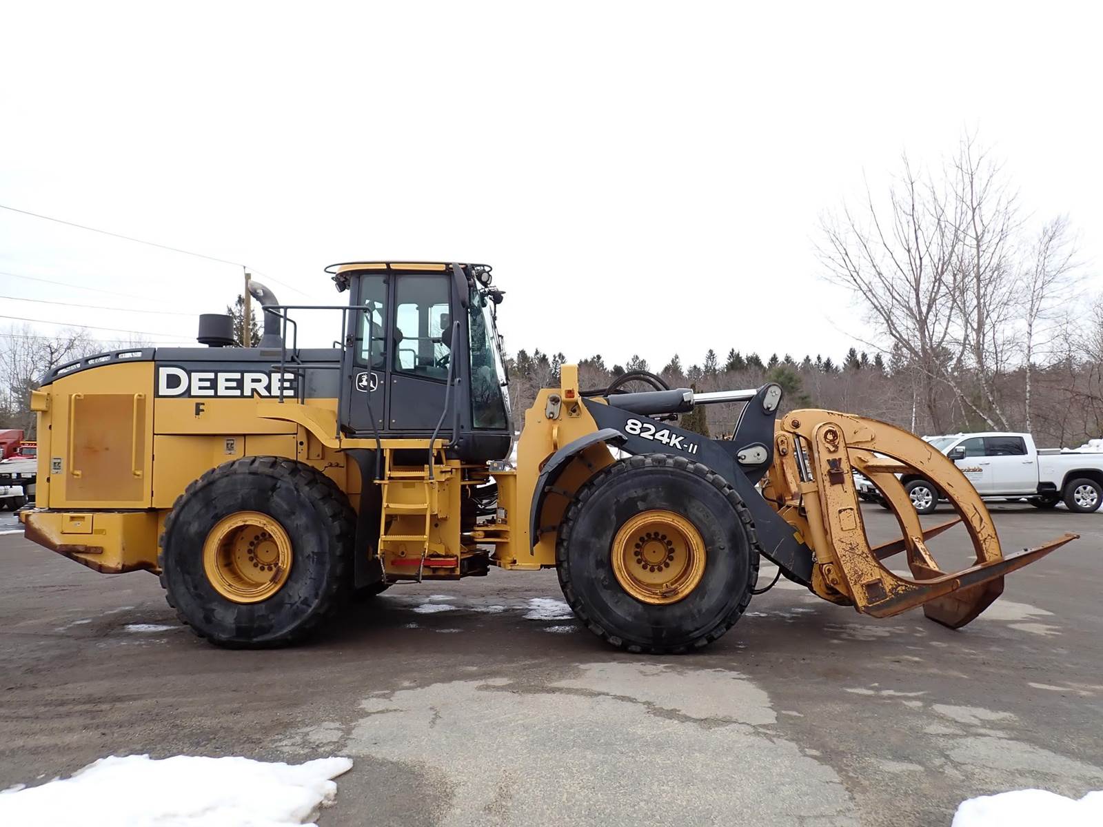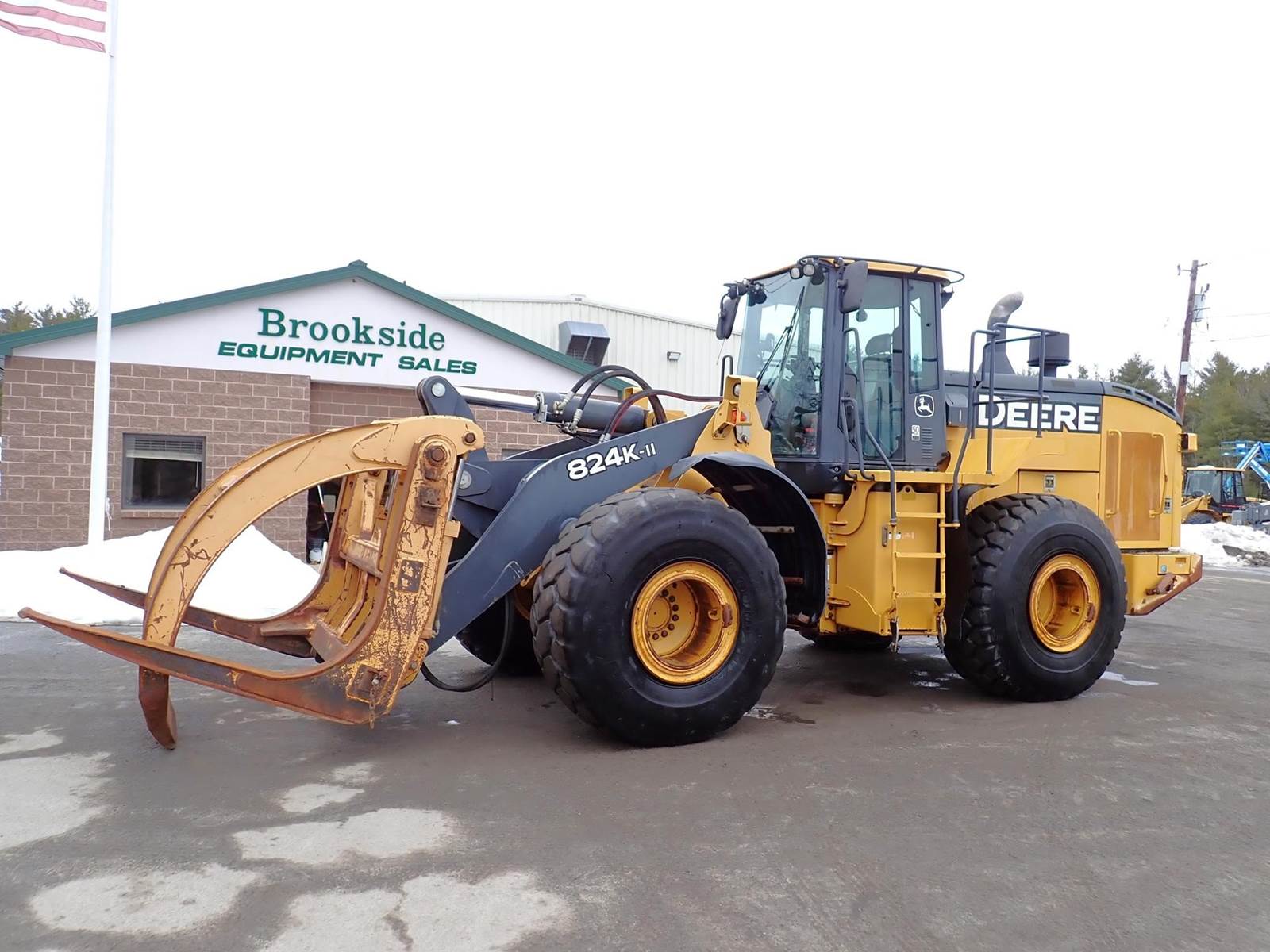 7'4" Wicker Machine Co. grapple, cab w/ a/c, 6 cyl JD twin turbo, 59k lbs