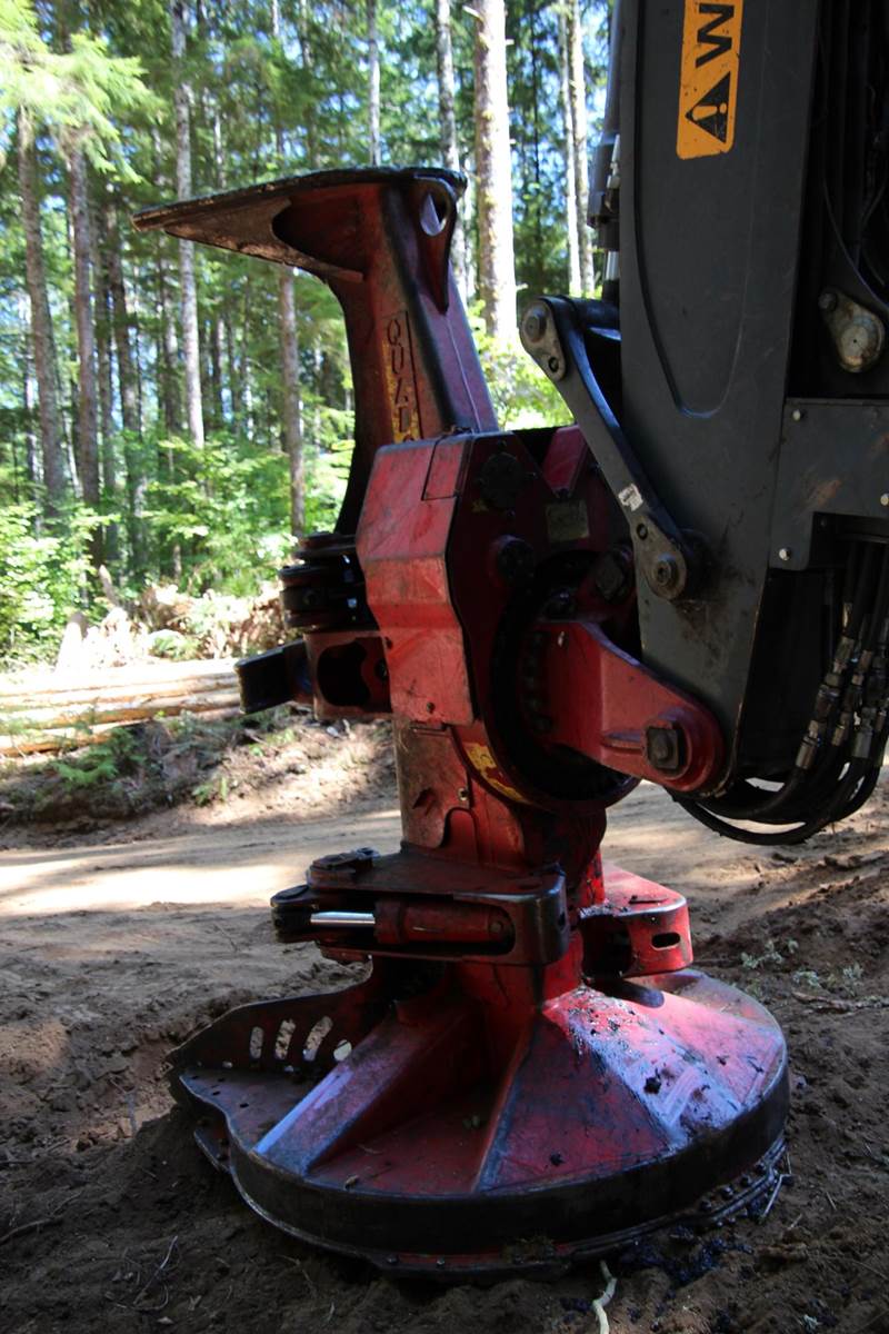 2019 John Deere 959M tracked feller buncher, maintenance on drive motors done every 250 hrs, and rotated every 500hrs, 246 kW (330 hp) engine, 1392 Nm (1027 lb-ft) engine torque,Engine, Model: John Deere PowerTech Plus 6090PSS,Output: 246 kW (330 hp) @ 1900 rpm,Torque: 1392 Nm (1027 lb-ft),Rated Speed: 1900 rpm 29 ft 1 in (8.88 m) maximum boom reach, 10 ft 5 in tail swing, superstructure width of 3.2 meters (10 ft 6 in) and a track gauge of 2.72 meters (8 ft 11 in), Track Rollers (Each Side), 9Carrier Rollers (Each Side), Superstructure Width: 3200 mm (10 ft 6 in), Track Gauge: 2720 mm (8 ft 11 in), Base Carrier Length: 4.9 m (16 ft 1 in), Overall Width: 3330 mm (10 ft 11 in),Track Length on Ground: 3810 mm (12 ft 6 in),Tailswing Radius: 3180 mm (10 ft 5 in),Ground Clearance: 747 mm (29 in),Fuel Tank: 285.4 gallons Cab Leveling Tilt (Forward): 26 degrees,Cab Leveling Tilt (Rear): 14 degrees, Travel Speed: 2.3 mph,Lift Capacity at Max Reach: 17,570.9 lbs, Cutting Swath: Up to 13.2 ft weight 83,260lbs Quadco 27B Height 2,972 mm 117" Width 1,778 mm 70", Depth 1,880 mm 74", Maximum Throat Opening 1,466 mm 57.7" ,Maximum Throat, Opening @ Teeth 1,118 mm 44", Accumulation Area 0.58 m2 6.2 ft2, Weight with XT Rotate 4,100 kg 9,040 lbs, Cutting Capacity 686 mm 27", Tip-to-Tip Diameter 1,651 mm 65" ,Rated Saw Speed 1,000 rpm, Number of Teeth 18, Saw Kerf 59 mm 2 5/16"Style One Piece,Cylinders (Diameter) 3",Grab Arms 2 Cylinders, Accumulating Arms 2 Cylinders