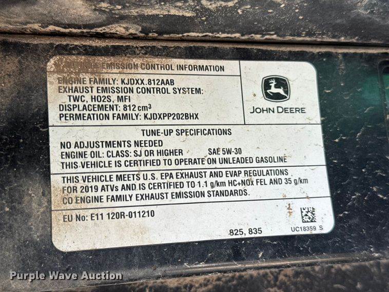 2019 John Deere XUV835M Utility Vehicle