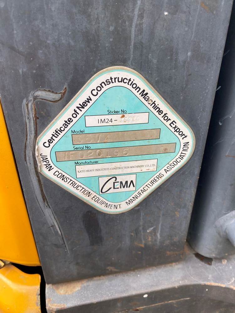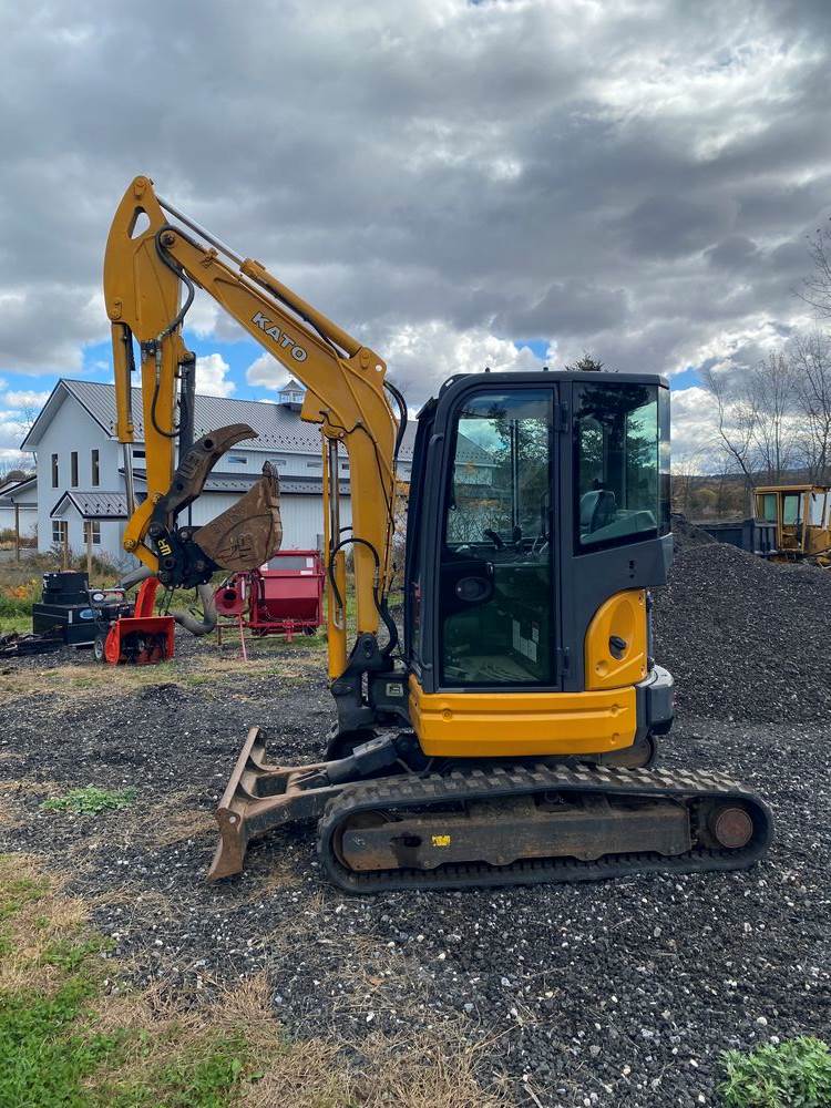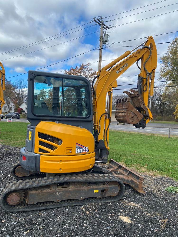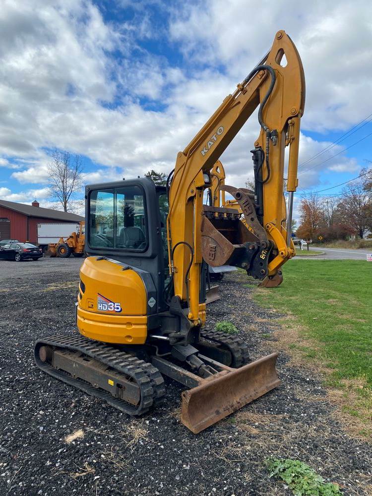 2019 Kato HD35 V4 Excavator. Serial #WF020196. Hours: 1,295. Enclosed Cab with Heat & AC, Appx weight 8,000 pounds, Yanmar Diesel, Power Expandable Track Bottom, WB Hydro Thumb, WB 23" Bucket, WB Coupler, Rubber Tracks. High Quality Machine made in Japan. Runs/Operates as intended. Ready for work. Sold on Bill of Sale.