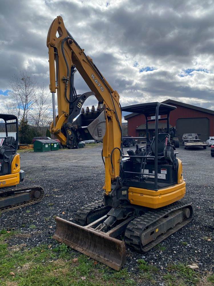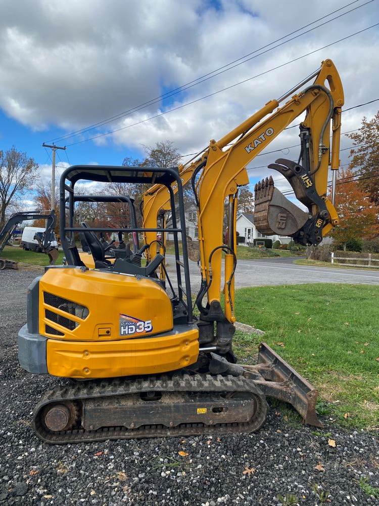 2019 Kato HD35 V4 Excavator. Serial #WM004118. Hours: 1,028. Appx weight 7,500 pounds, Open Station, Rubber Tracks, WB hydro Thumb, WB 23" Bucket, WB Coupler, Yanmar Diesel. Non Zero tail. High Quality Machine made in Japan. Runs/Operates as intended. Ready for work. Sold on Bill of Sale.