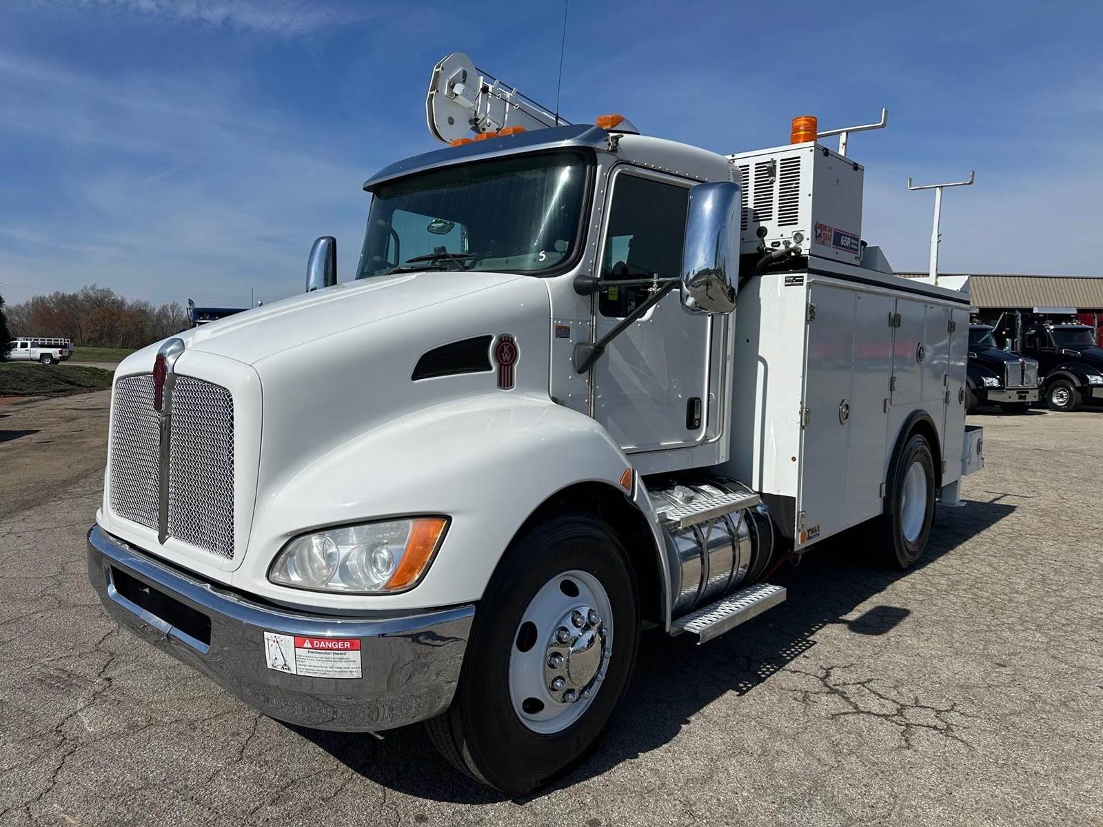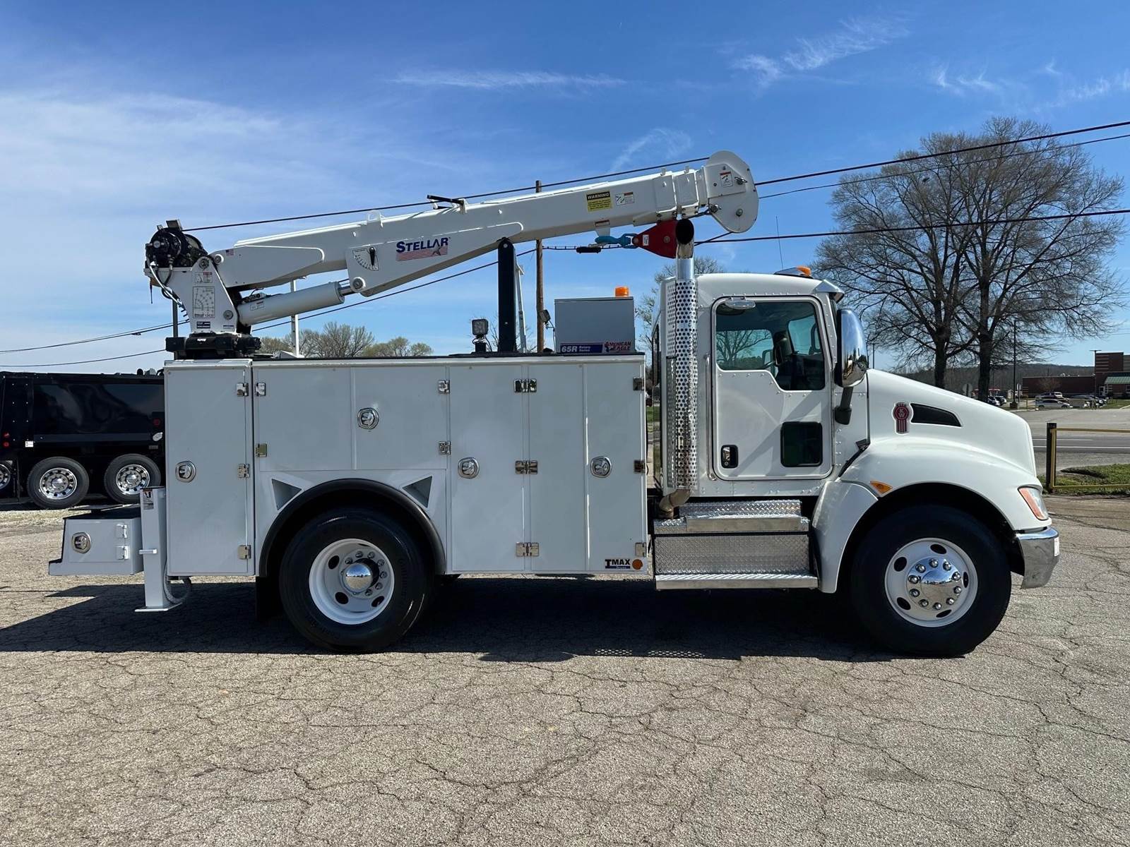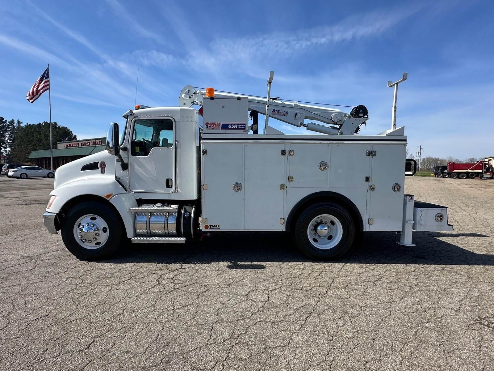 2019 Kenworth T370 --- PACCAR 300 HP, Allison Automatic 6 Speed, 5.57 Ratio, 12,000 Front Axle, 21,000 Rear Axle, 155" Wheelbase, 12' 11" Bridge, Spring, Air Brake, Exhaust Brake, 11' Stellar Body, Steel Wheels, Engine Heater Plug, Single Stack, Aluminum Fuel Tank, Daylite Doors, Peep Window, Air Ride Seats, High Level Interior, Wood Grain Dash, Chrome Gauge Package, Heated Mirrors, Cruise Control, Tilt & Telescopic Steering Wheel, AM/FM, Power Windows, P/L, P/S, AC.