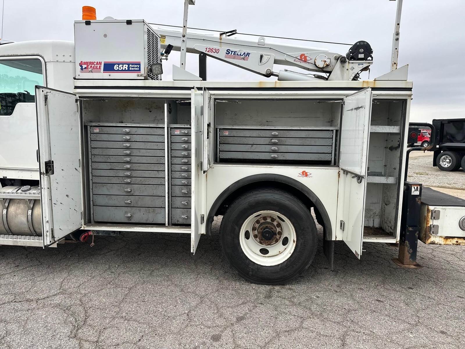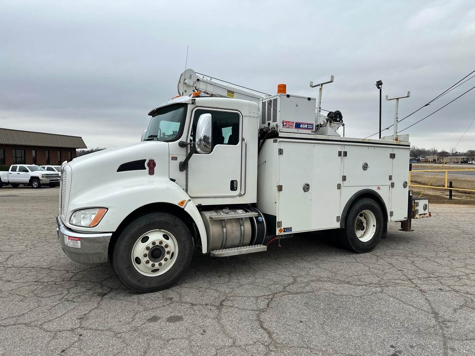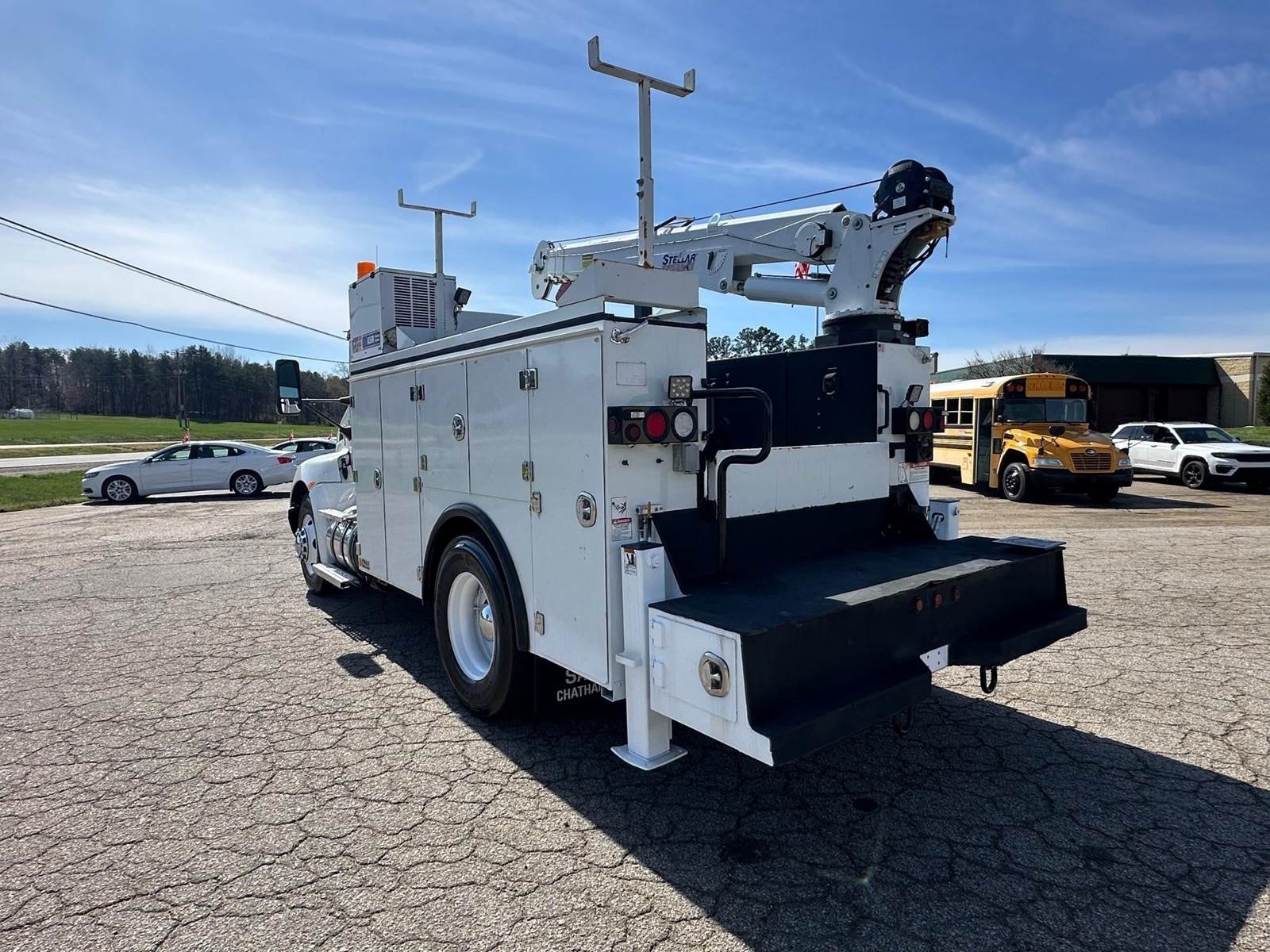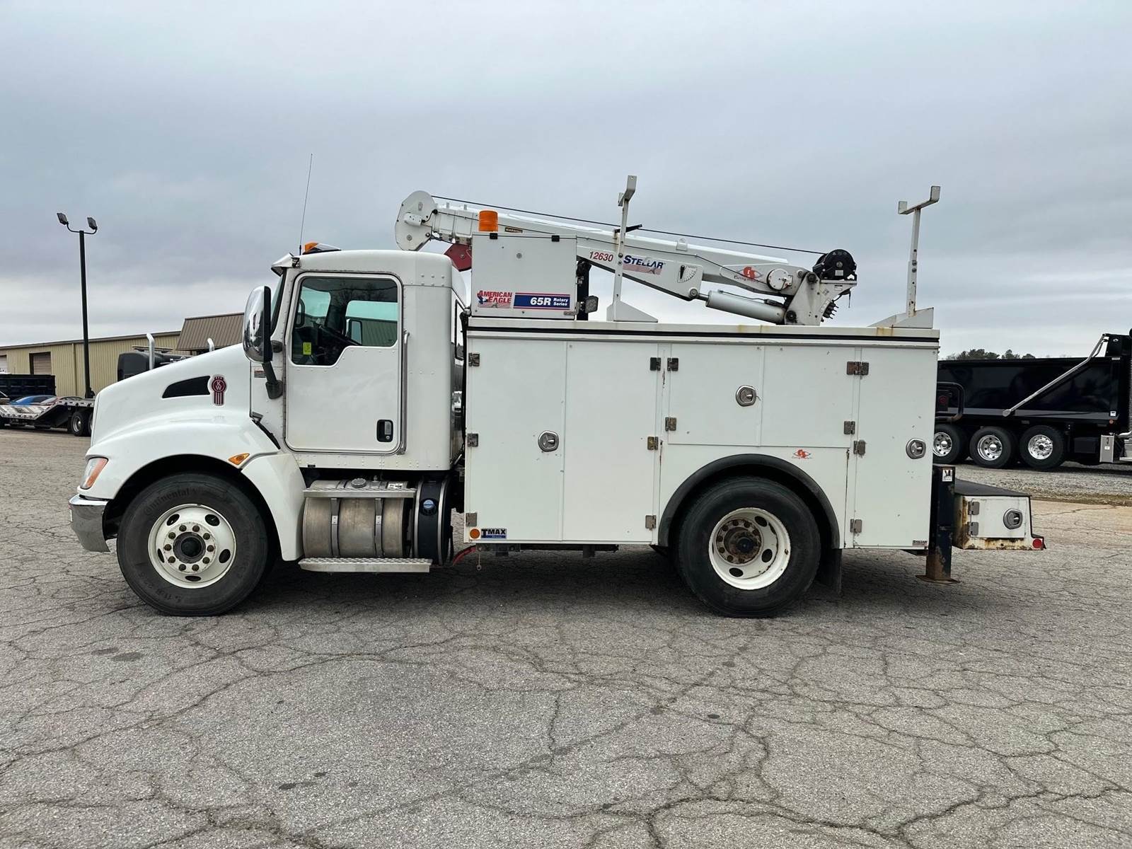 2019 Kenworth T370 --- PACCAR 300 HP, Allison Automatic 6 Speed, 5.57 Ratio, 12,000 Front Axle, 21,000 Rear Axle, 155" Wheelbase, 12' 11" Bridge, Spring, Air Brake, Exhaust Brake, 11' Stellar Body, Steel Wheels, Engine Heater Plug, Single Stack, Aluminum Fuel Tank, Daylite Doors, Peep Window, Air Ride Seats, High Level Interior, Wood Grain Dash, Chrome Gauge Package, Heated Mirrors, Cruise Control, Tilt & Telescopic Steering Wheel, AM/FM, Power Windows, P/L, P/S, AC.