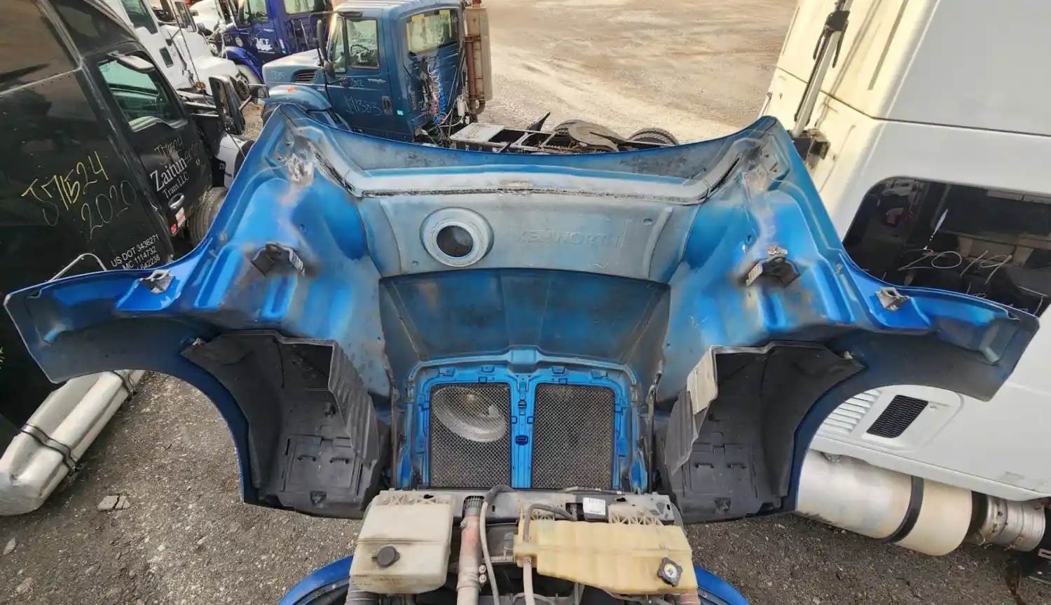 (Used) 2019 Kenworth T680, HOOD ASSEMBLY- Part Number: L29-1293-10000, Length: 55", From Cowl to grille, Color: Blue, Material: Fiberglass, Has Some scratches!! Reference images for condition, For more information about this item, give us a call. We ship Worldwide! (CRG HEAVY TRUCK PARTS) 929 W PULASKI HWY ELKTON, MD 21921, Length: 55", Type: Manual
