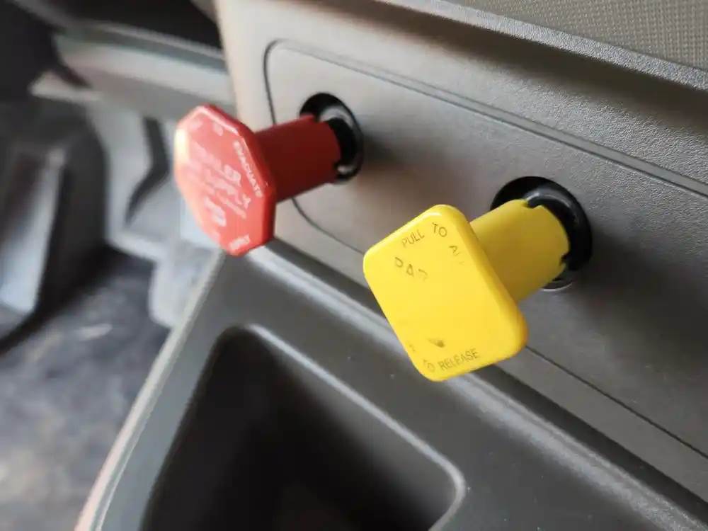 (Used) 2019 Kenworth T680, MISCELLANEOUS DASH SWITCHES- Controls: Trailer Air Supply, Parking Brake, Material: Plastic, Reference images for condition, For more information about this item, give us a call. We ship Worldwide! (CRG HEAVY TRUCK PARTS) 929 W PULASKI HWY ELKTON, MD 21921, Material: Plastic