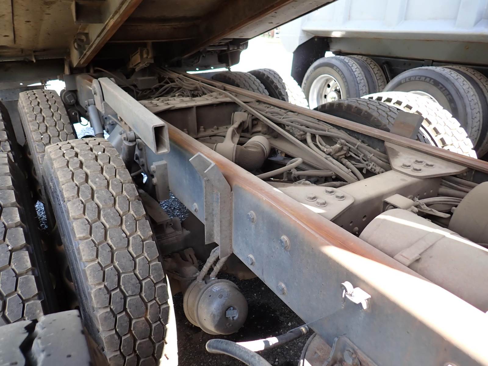10 wheel, 14'6" steel JJ body, Mack E7-350, Mack 13 speed, camelback suspension, hitch, 20k front, 58k rears,
