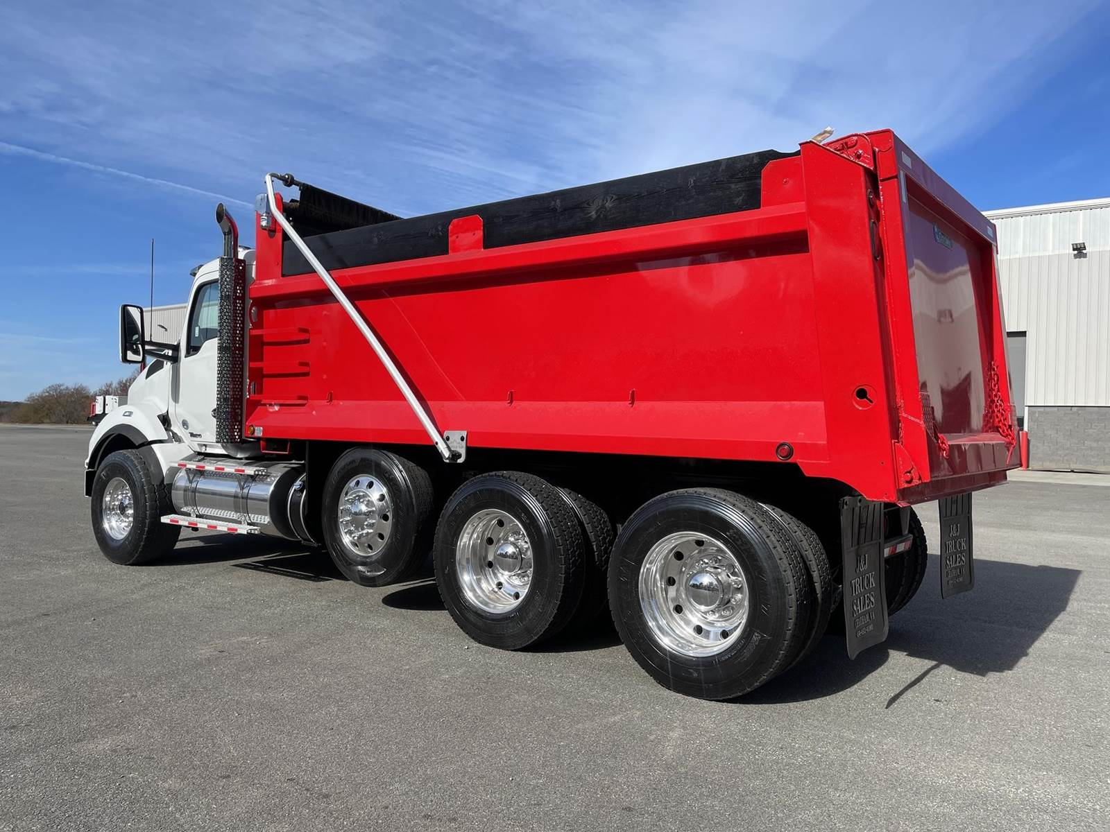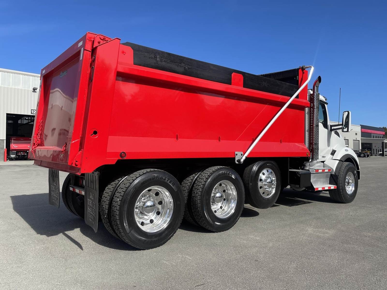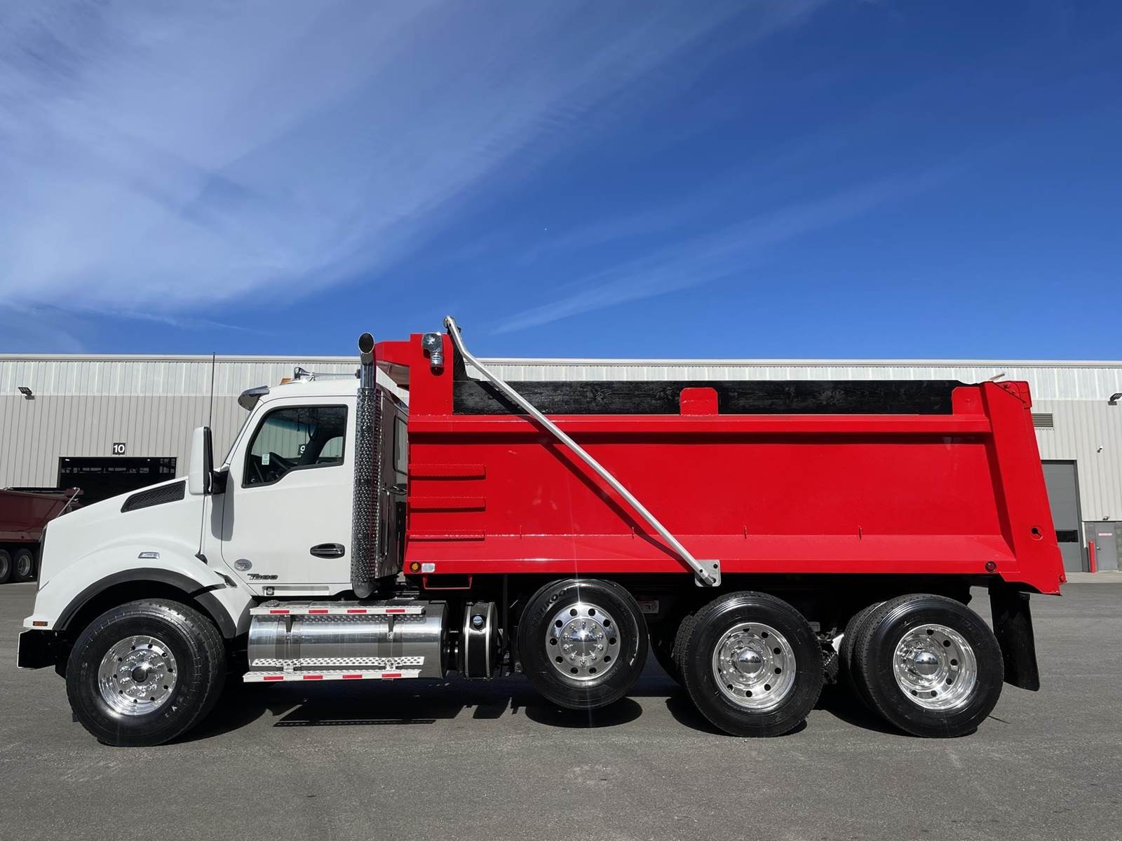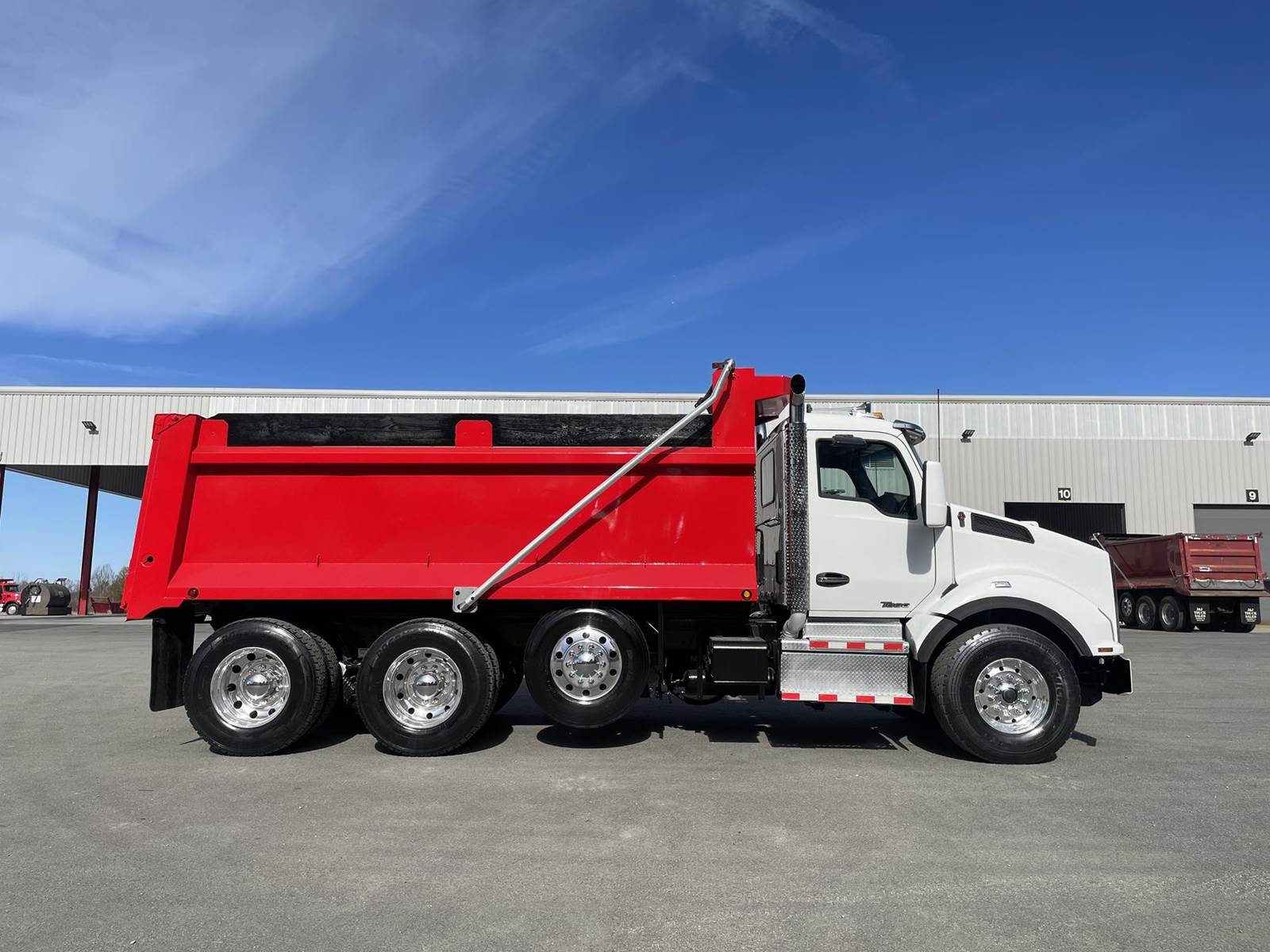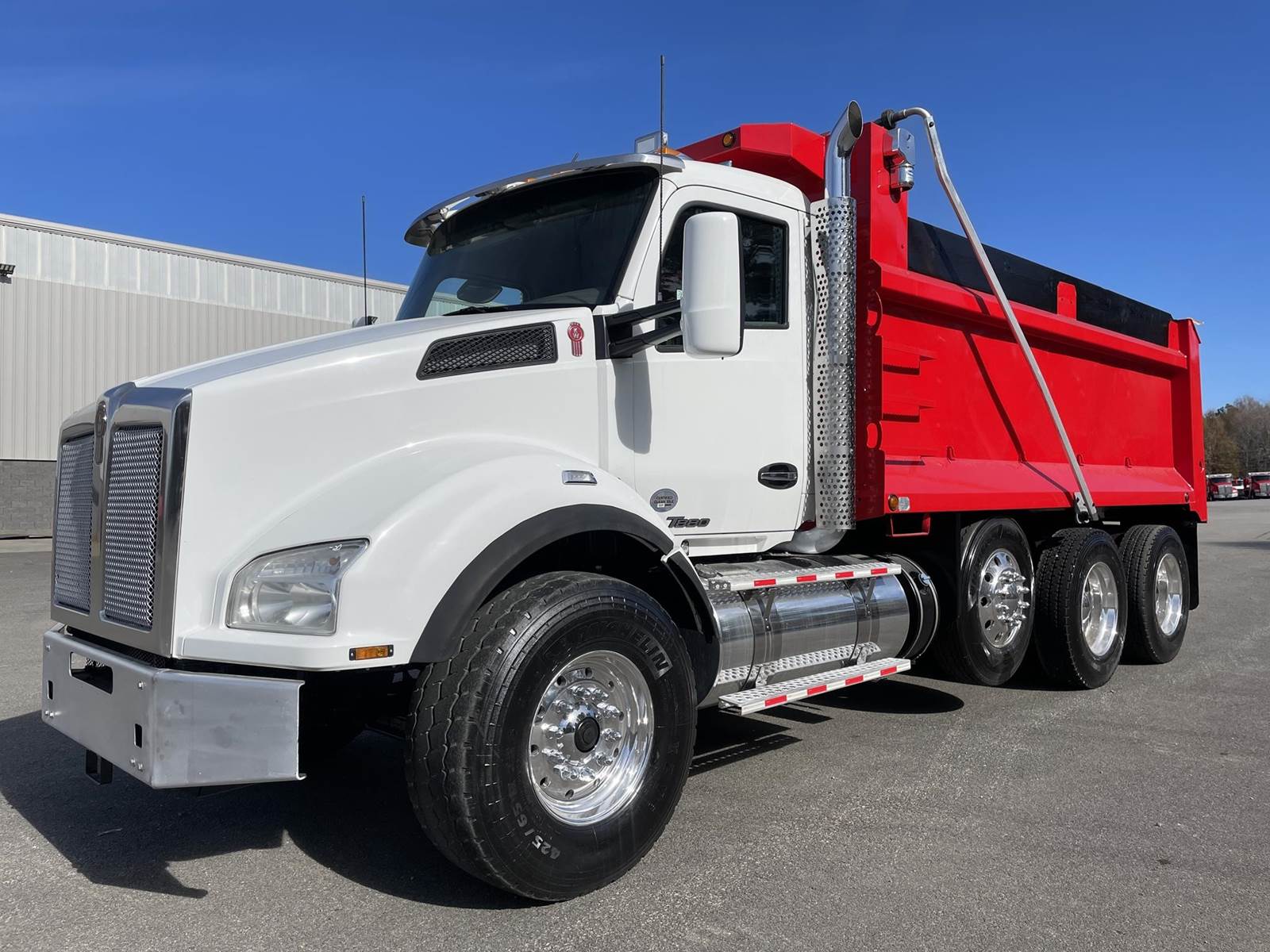 Triaxle, 17' R/S Steel Dump w/50" Sides, MX13 Paccar 455 HP, Allison Automatic 6 Speed, 5.38 Ratio, 3 Stage Engine Brake, HaulMaax, Double Frame, 20K FA, 46K RA, 12,350 Steerable L/A, 216" WB, 20'4" Bridge, Diff Lock, Wheel Lock, Electric Tarp, Air Tailgate, Bed Vibrator, Dual Exhaust, P/S A/C, AM/FM CD Bluetooth, Heated Mirrors, Cruise, Tilt/Tele Wheel, Power Windows, Locks, and Mirrors, Dual High Back Seats, 120 Gallon Aluminum Fuel Tank, 425/65R22.5 Steer Tires on Aluminum Wheels, 11R24.5 Drive Tires on All Aluminum Wheels, Aluminum Bumper
