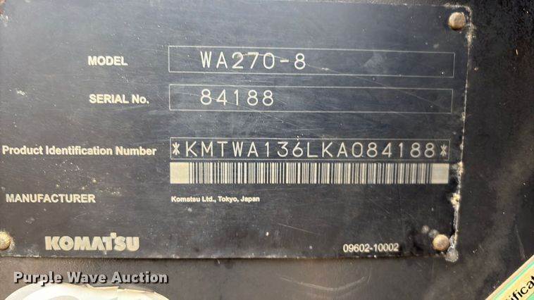 2019 Komatsu WA270 wheel loader