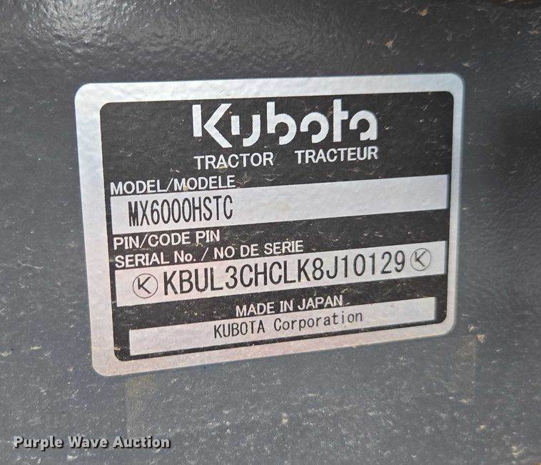 2019 Kubota MX6000 Mfwd Tractor