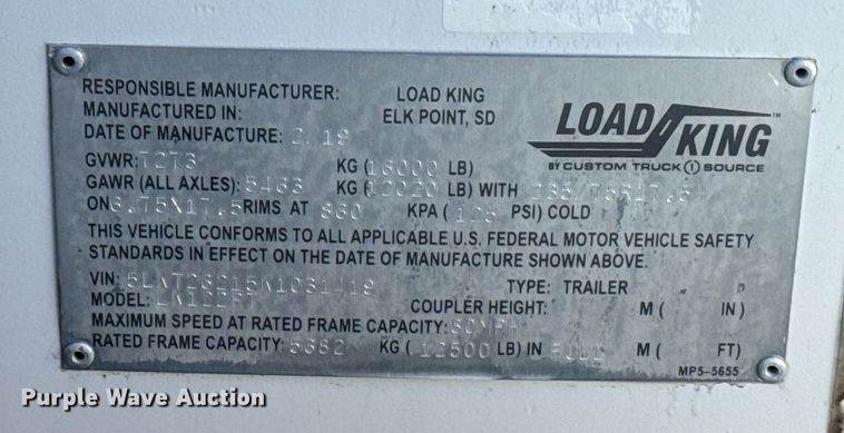 2019 Load King LK122PT utility trailer