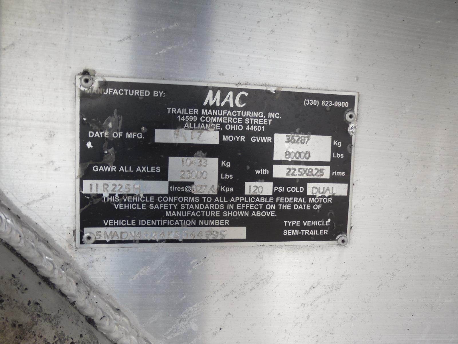 2019 MAC 40 ft End Dump Trailer - Tandem Axle, Aluminum, Air Ride