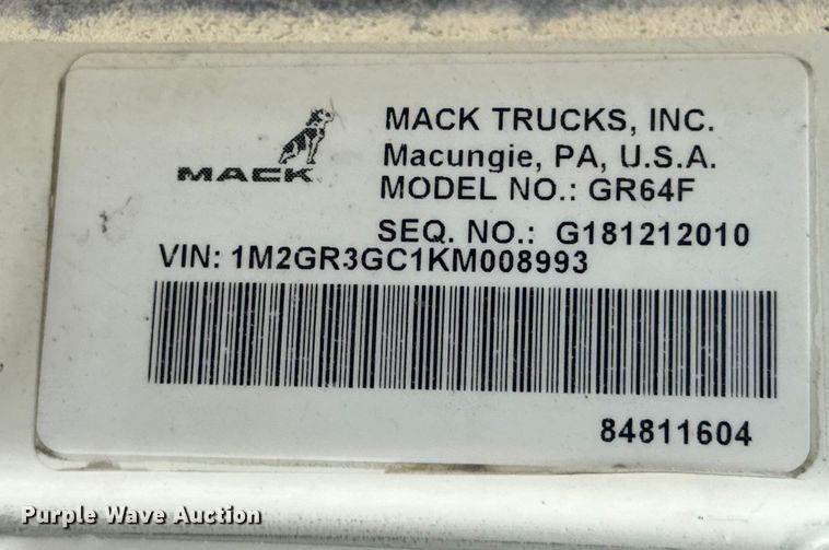 2019 Mack Granite dump truck