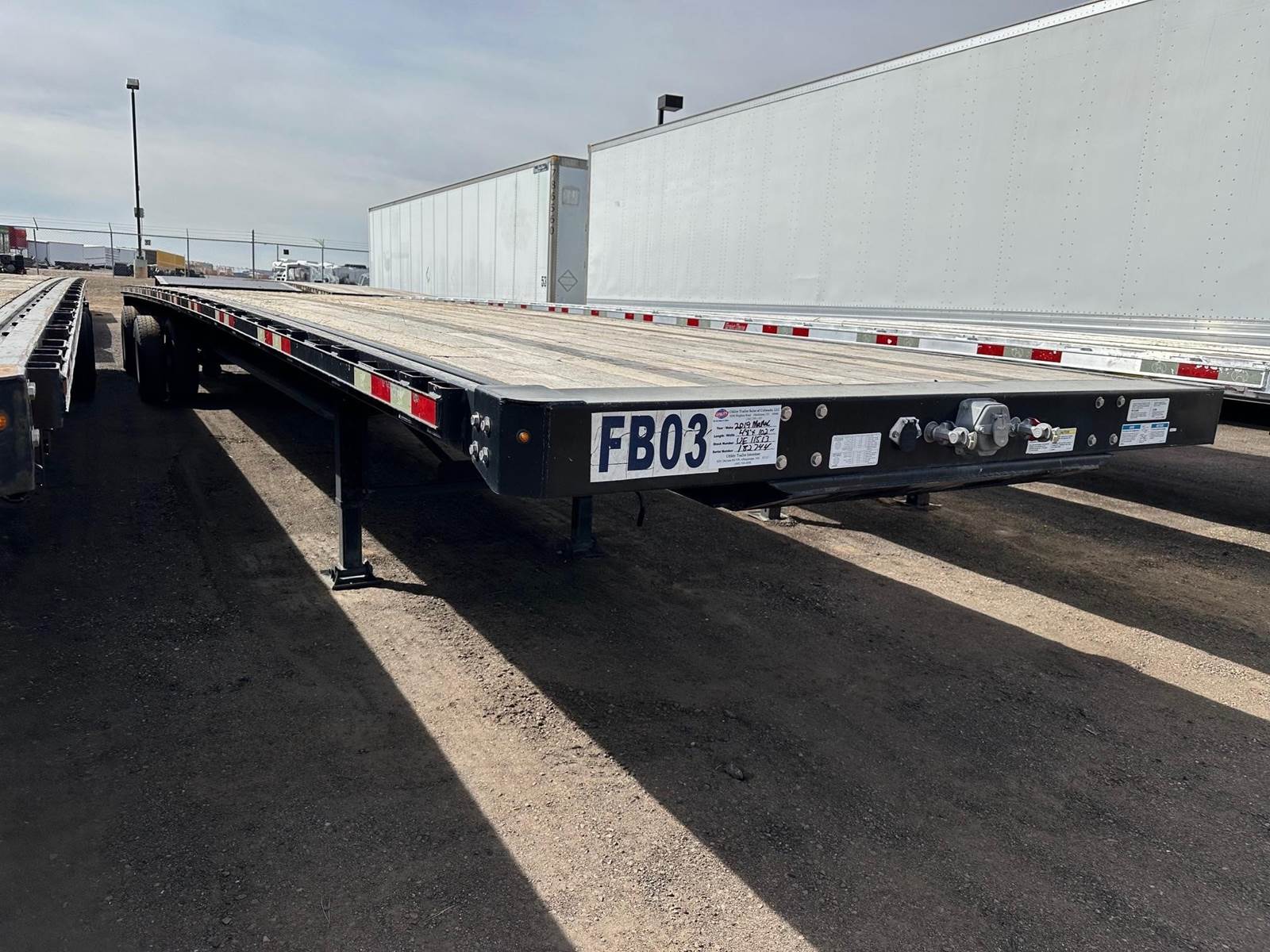 2019 Manac Steel Flatbed, 48' x 102", Steel Main Beams and Rails, Wood Deck, Stake Pockets, Sliding Winches, Fixed Spread Air Ride, Steel Wheels, 22.5LP Tires.