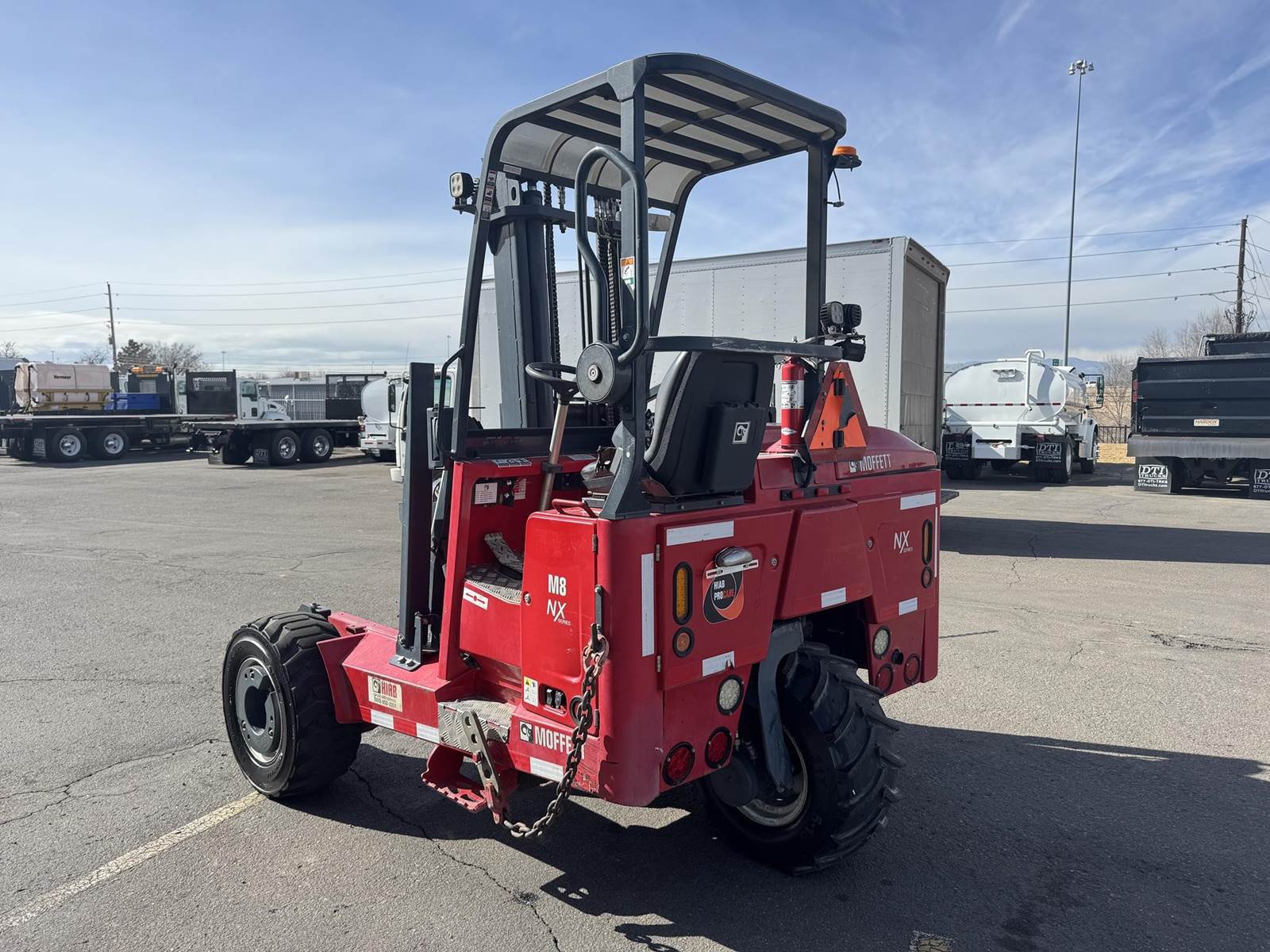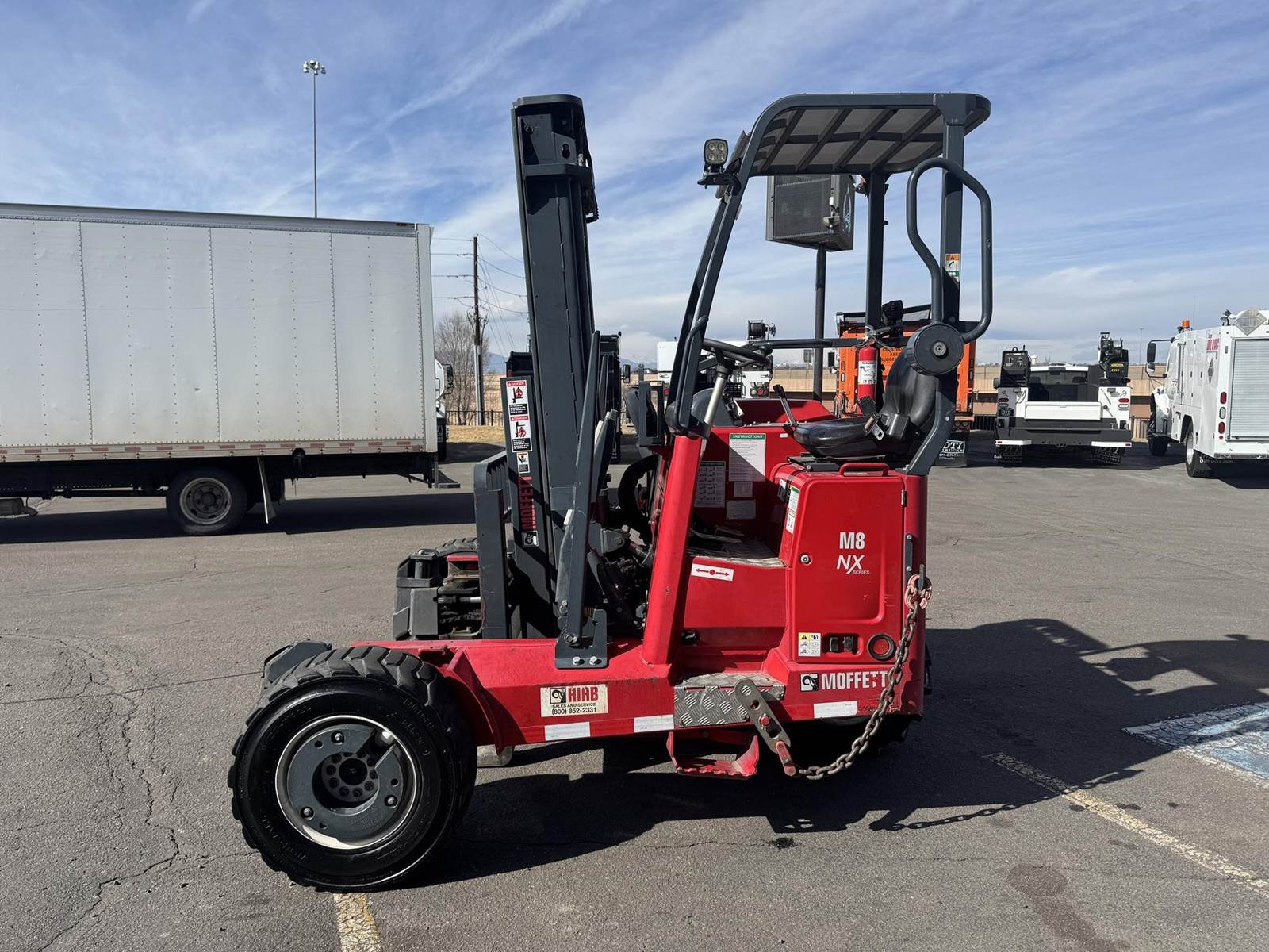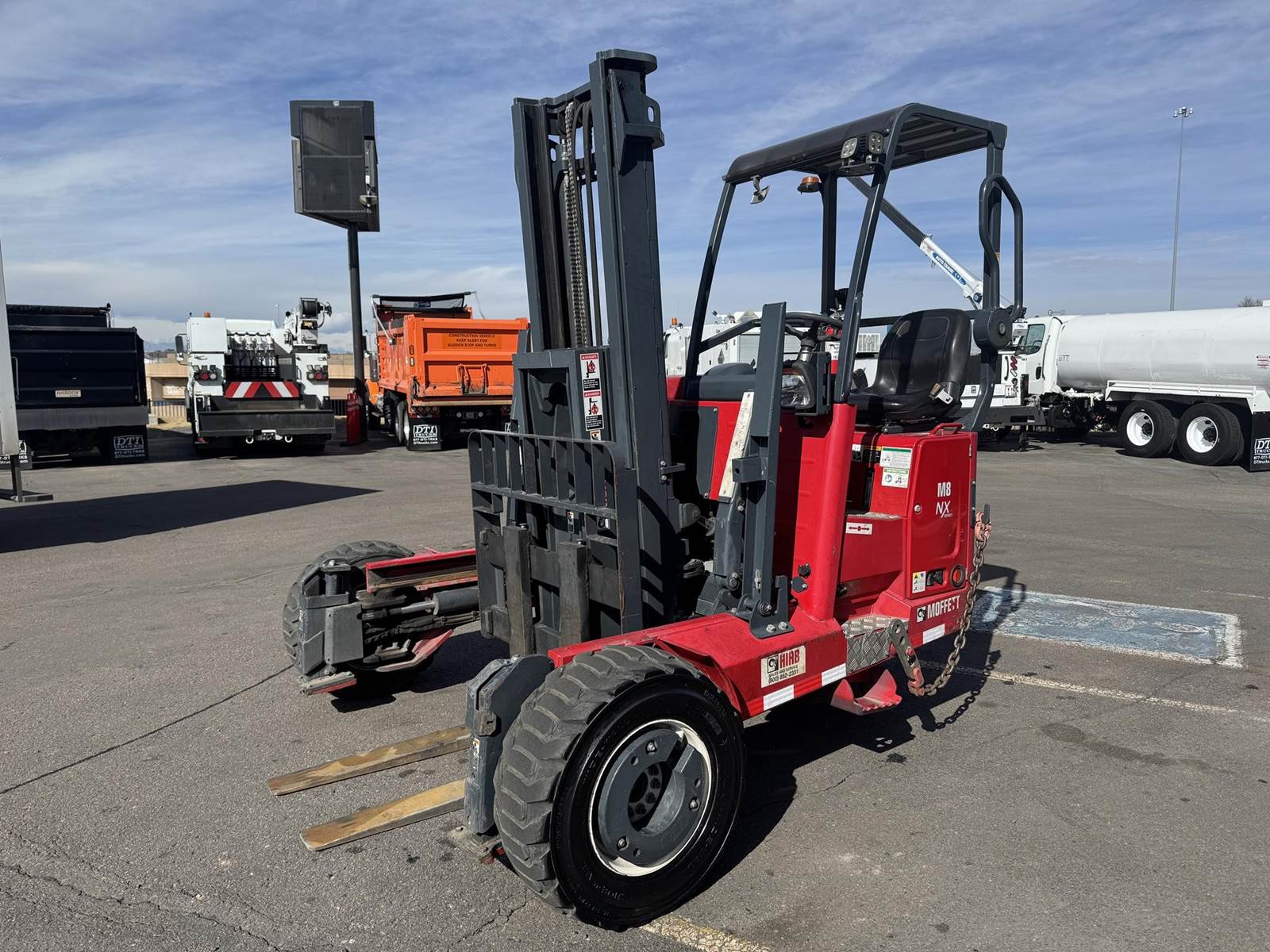 2019 Moffett M8 55.4P NX Series Truck Mounted Forklift, Kohler Diesel Engine, 56 HP, 31.5x13-16.5 Front Tire Size, 31x15.50-15 Steer Tire Size, All Mounted On Steel Wheels, Counterweights In Front Wheels, Remote Ground Mount Option, X-Model, 4-Way, Lift Assist, 42" L x 6" W x 2" T Forks. This Low Hour Moffett 4-Way Truck Mounted Forklift Is Available At DTI Trucks In Denver, CO. Stock #1600E. Call Or Text Kenneth For More Information (720) > 271 > 4500