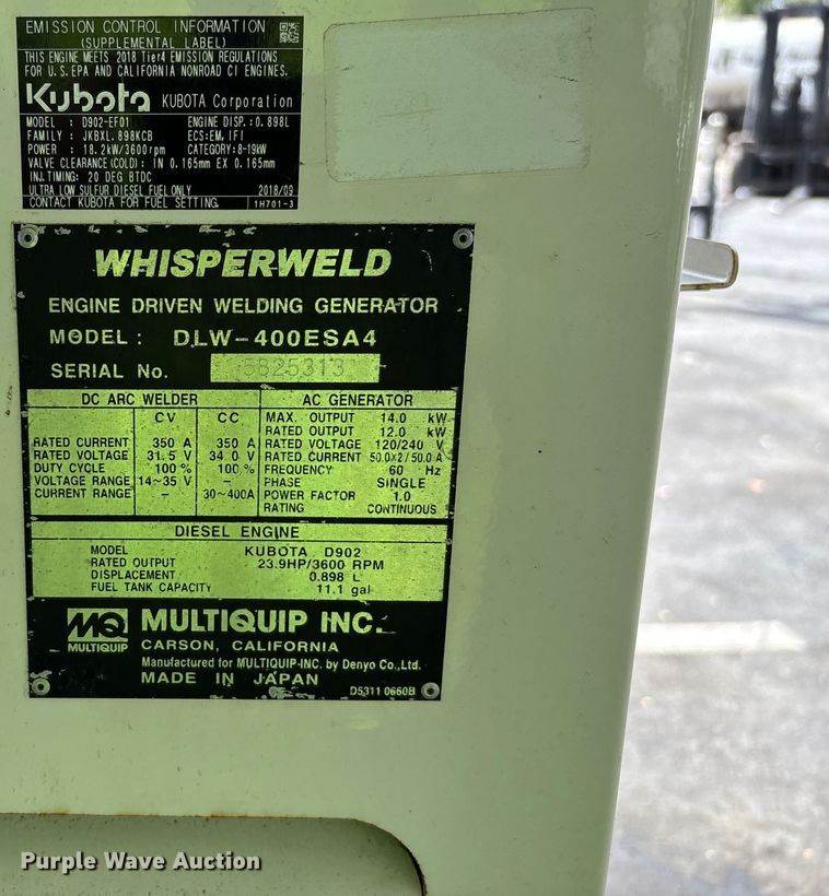 2019 Multiquip DLW-400ESA4 welder