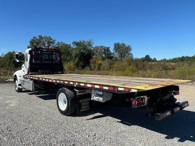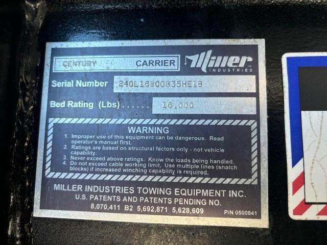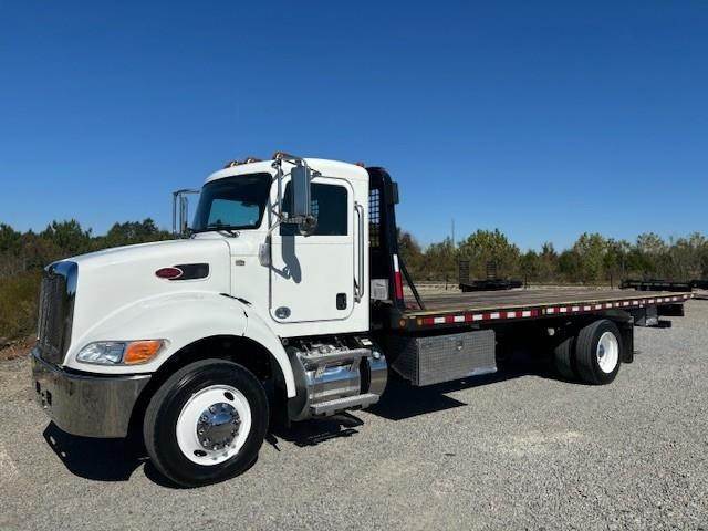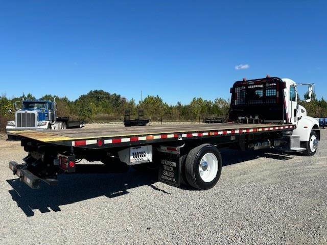 2019 Peterbilt 337 --- Single Axle, PX7 PACCAR 280 HP, Allison Automatic 6 Speed, 4.63 Ratio, 12,000 Front Axle, 21,000 Rear Axle, 238" Wheelbase, 19' 10" Bridge, Air Ride, Air Brake, Exhaust Brake, Reese Hitch with Electric Brakes, Steel Wheels, Aluminum Fuel Tank, Peep Window, Air Ride Seats, High Level Interior, Heated Mirrors, Cruise Control, Tilt & Telescopic Steering Wheel, AM/FM CD, Power Windows, P/L, P/S, AC. 22' X 102" MILLER CENTURY ROLL BACK BODY, 16,000 POUND CAPACITY, 12,000 POUND WARN WINCH WITH WIRELESS REMOTE, BEACON LIGHTS, TOOL BOX.