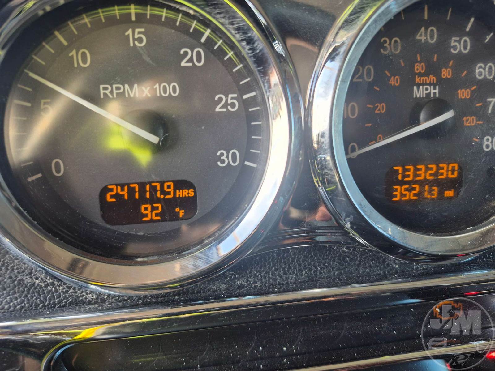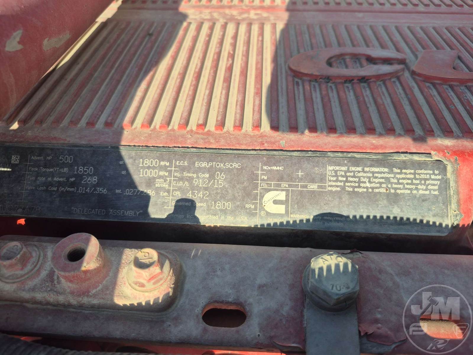TANDEM AXLE TRUCK TRACTOR, Â CUMMINS, X15, HP 500, EATON FULLER, 13 SPEED, AIR RIDE SUSPENSION, DRUM, 250 " WB, C/A: 108", 12K FRONTS, 38K REARS, 50000 LBS GVWR, A/C, AIR DRIVERS SEAT, CRUISE CONTROL, POWER WINDOWS, POWER MIRRORS, PTO, DUAL FUEL TANKS, AIR RIDE CAB, ALUM DISC WHEELS, AIR SLIDE FIFTH WHEEL, 11R24.5 TIRES, HOUR METER READS: 24718, ODOMETER READS: 733230