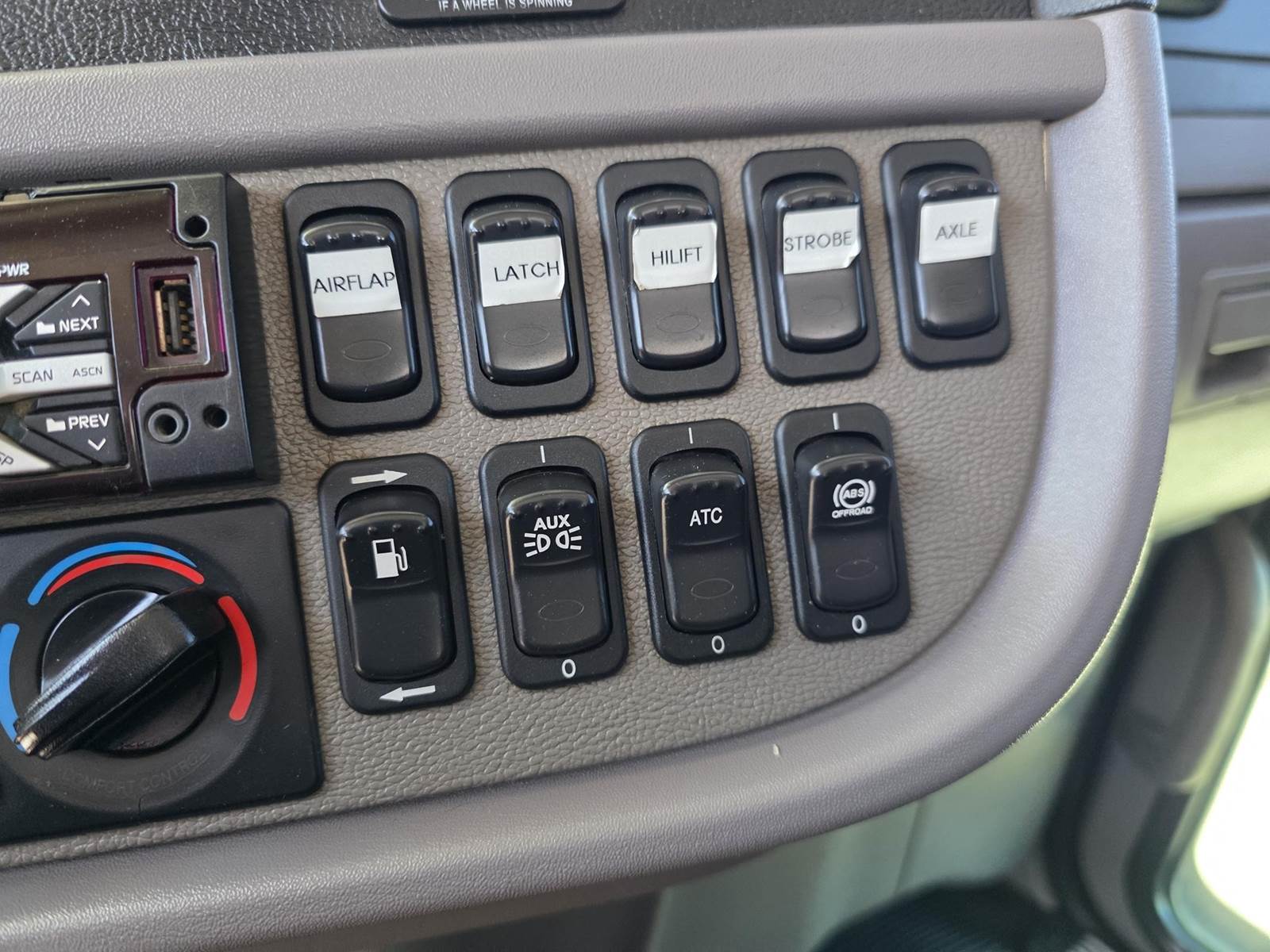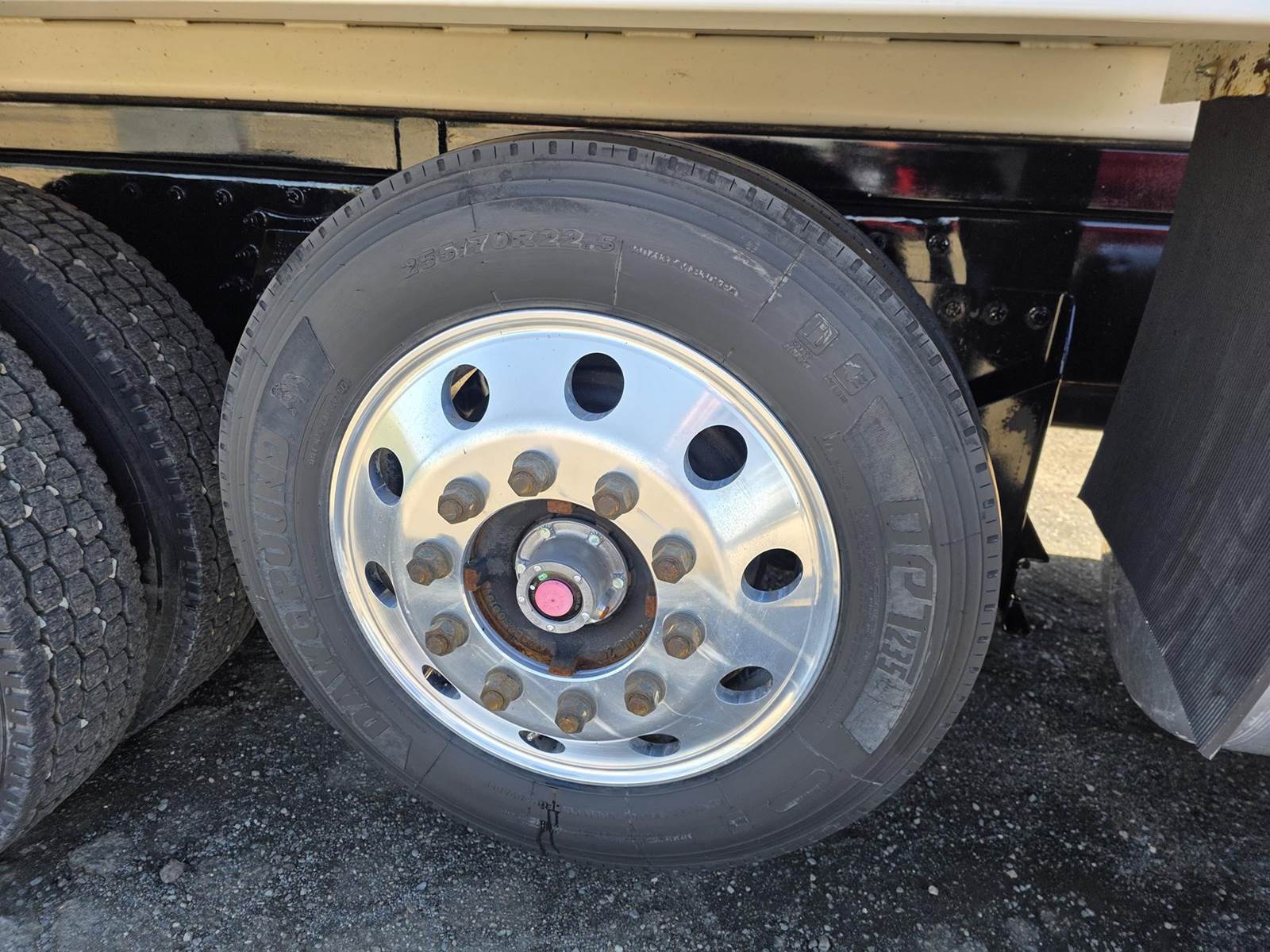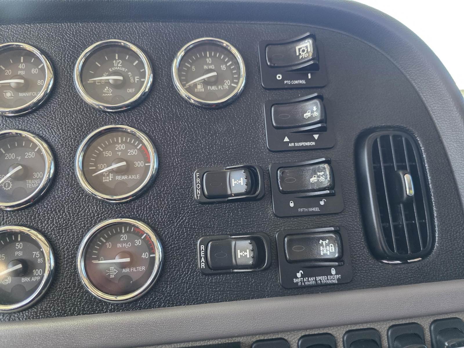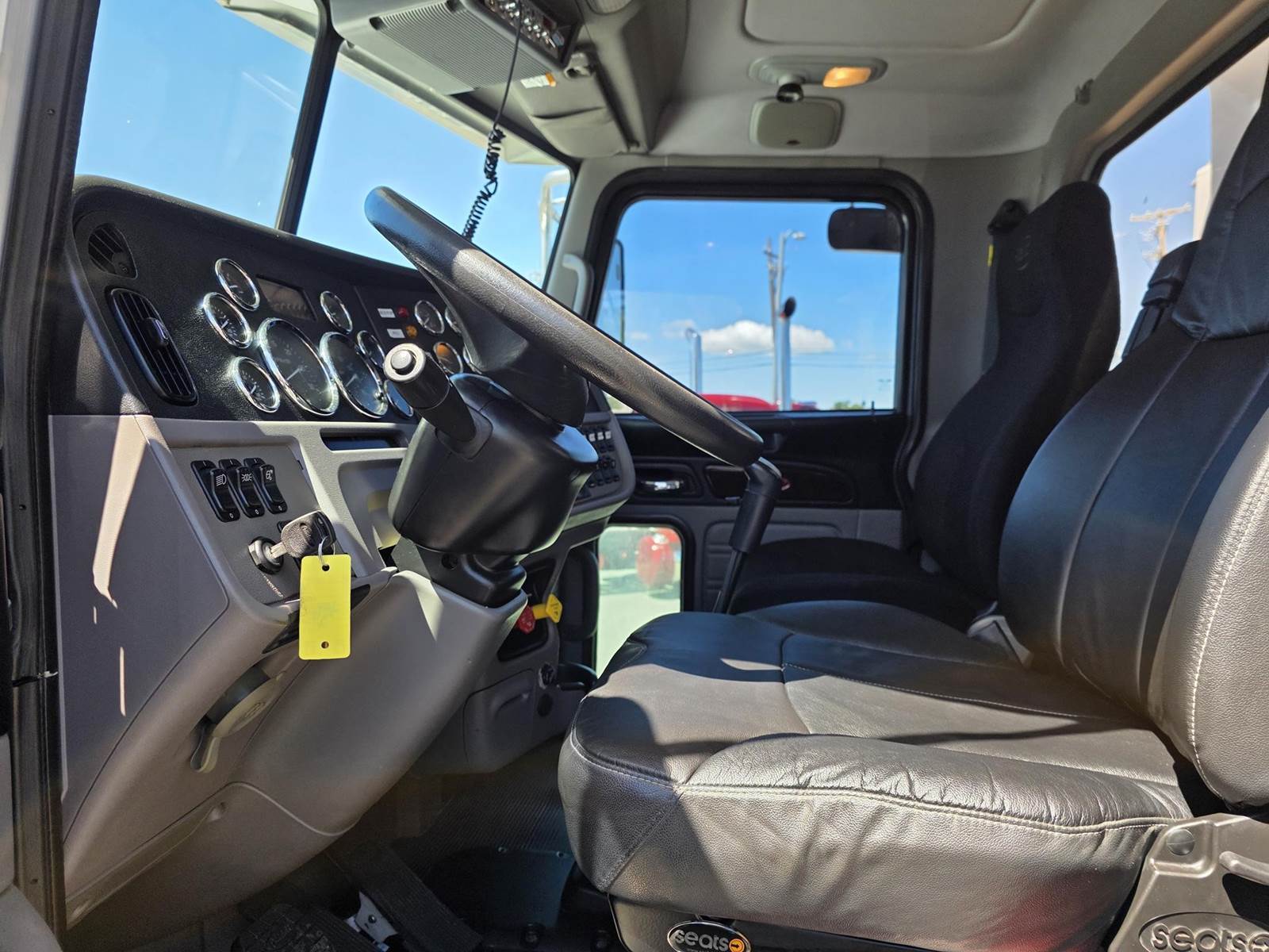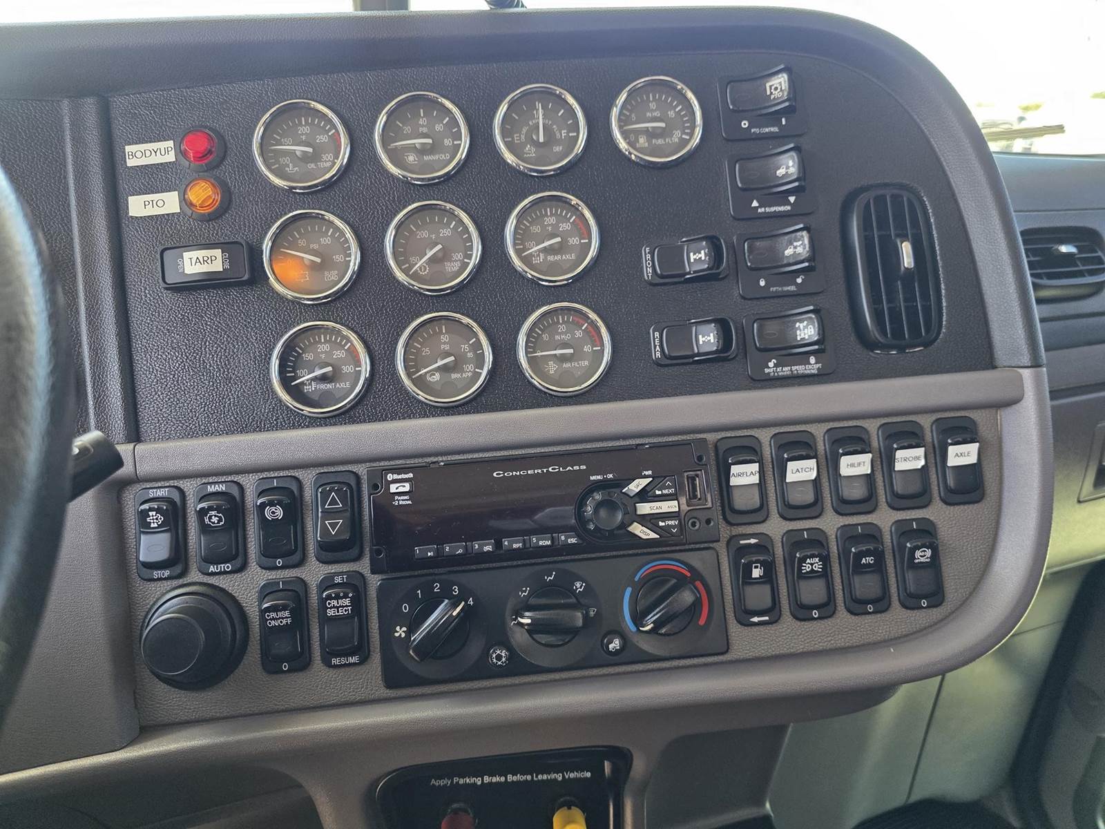 Cummins X15 (485 HP), Engine Brake, Eaton Fuller FRO16210C 10-Speed Manual Transmission, Dana Spicer DSH40 Dual Locking Rear Axles on Drum Brakes, 3.90 Ratio, Peterbilt Air Trac Suspension w/ Dump Switch, 315/80R22.5 Steer Tires, 11R24.5 Drive Tires on Aluminum Wheels, Steer Axle Disc Brakes , 23" L/H 100 Gallon Aluminum Fuel Tank, 23" Split Fuel Tank R/H 100 Gallon Aluminum 50 Gal Fuel & 50 Gal Hydraulic Tank, L/H Frame Mounted DEF Tank, Factory Installed DPF, L/H Aluminum Frame Mounted Battery Box, Chrome Bumper, Stainless Steel Visor, Factory Air Ride Day Cab, Leather Legacy Air Ride Drivers Seat, Tilt & Tele Steering Column, Gauge Package, Power Door Locks, Power Windows, Power Mirrors, Heated Mirrors, A/C, Cruise Control, AM/FM Radio w/ CD Player, Navigation & Bluetooth, Watson Chalin SL1190SSR 13,500 lb Steerable Pusher Axle,