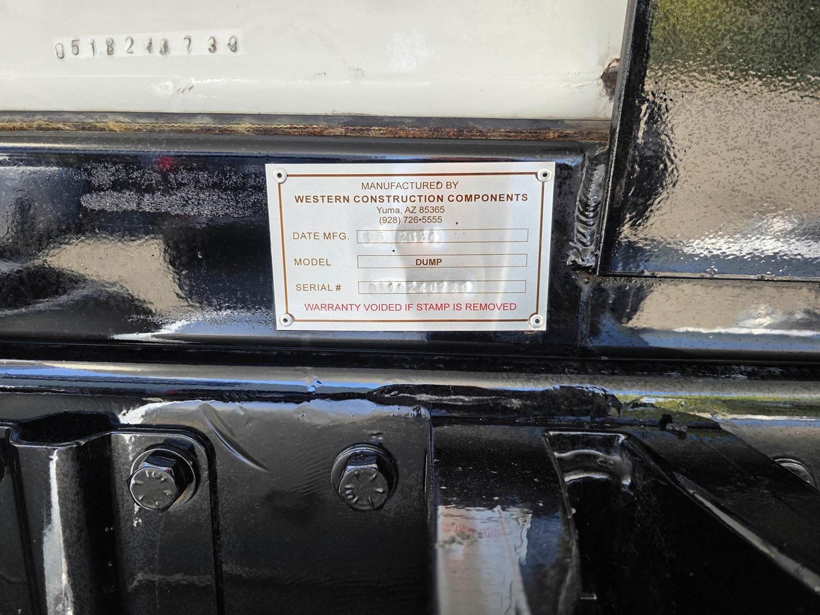 18' X 48" WESTERN, HARDOX DUMP BODY, HARDOX STEEL, HIGH LIFT AIR TAIL GATE, ELECTRIC TARP, DITCH GATE, 50 TON PINTLE HOOK PLUMBED W/ AIR & ELECTRICAL CONNECTIONS,